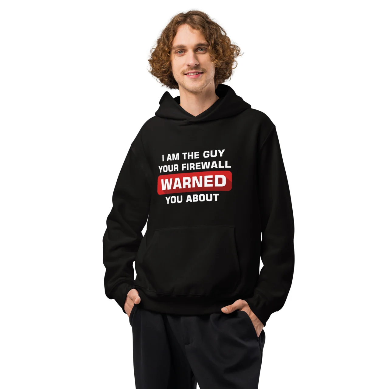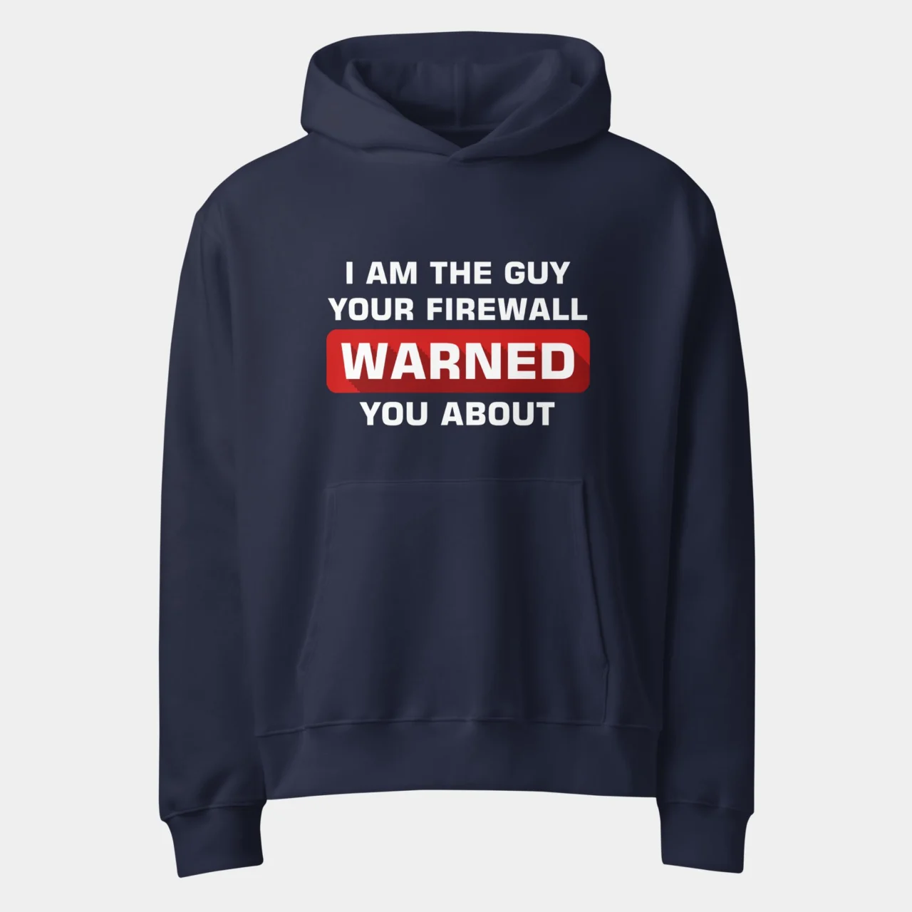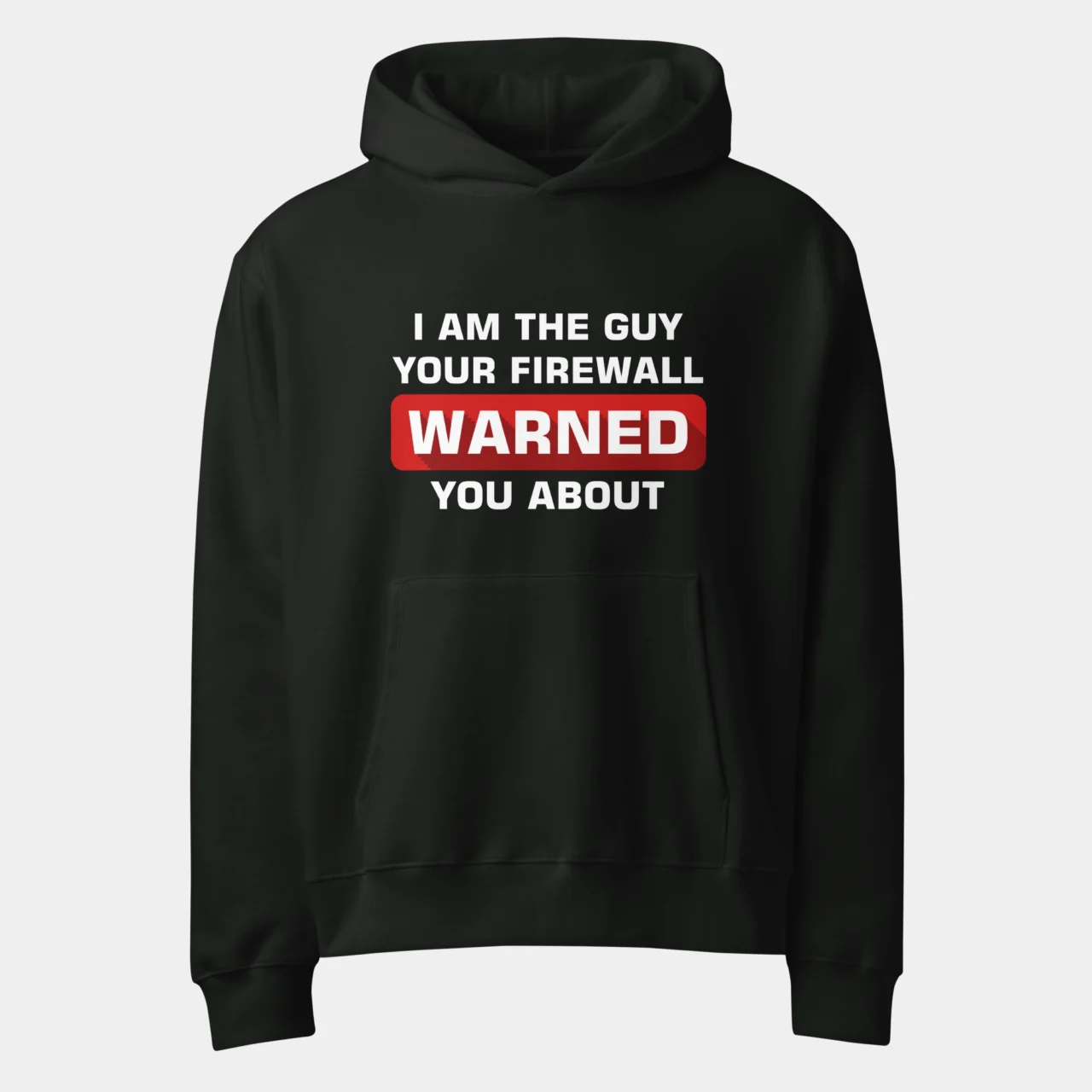 I’m The Guy Your Firewall Warned You About Oversized Hoodie – Funny Cybersecurity Hacker Pullover – IT Security Tech Humor Gift – Heavyweight Fleece