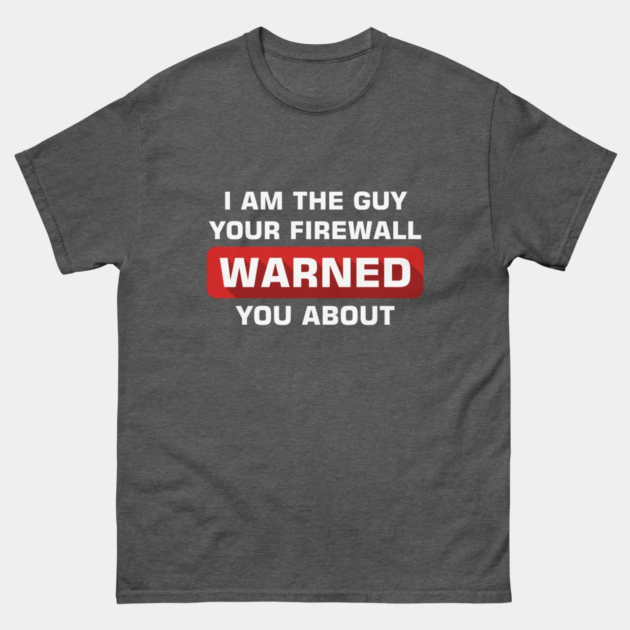 I’m The Guy Your Firewall Warned You About – Funny Cybersecurity T-Shirt for Men – Classic Unisex Heavy Cotton T-Shirt by Tech Geeks Apparel: