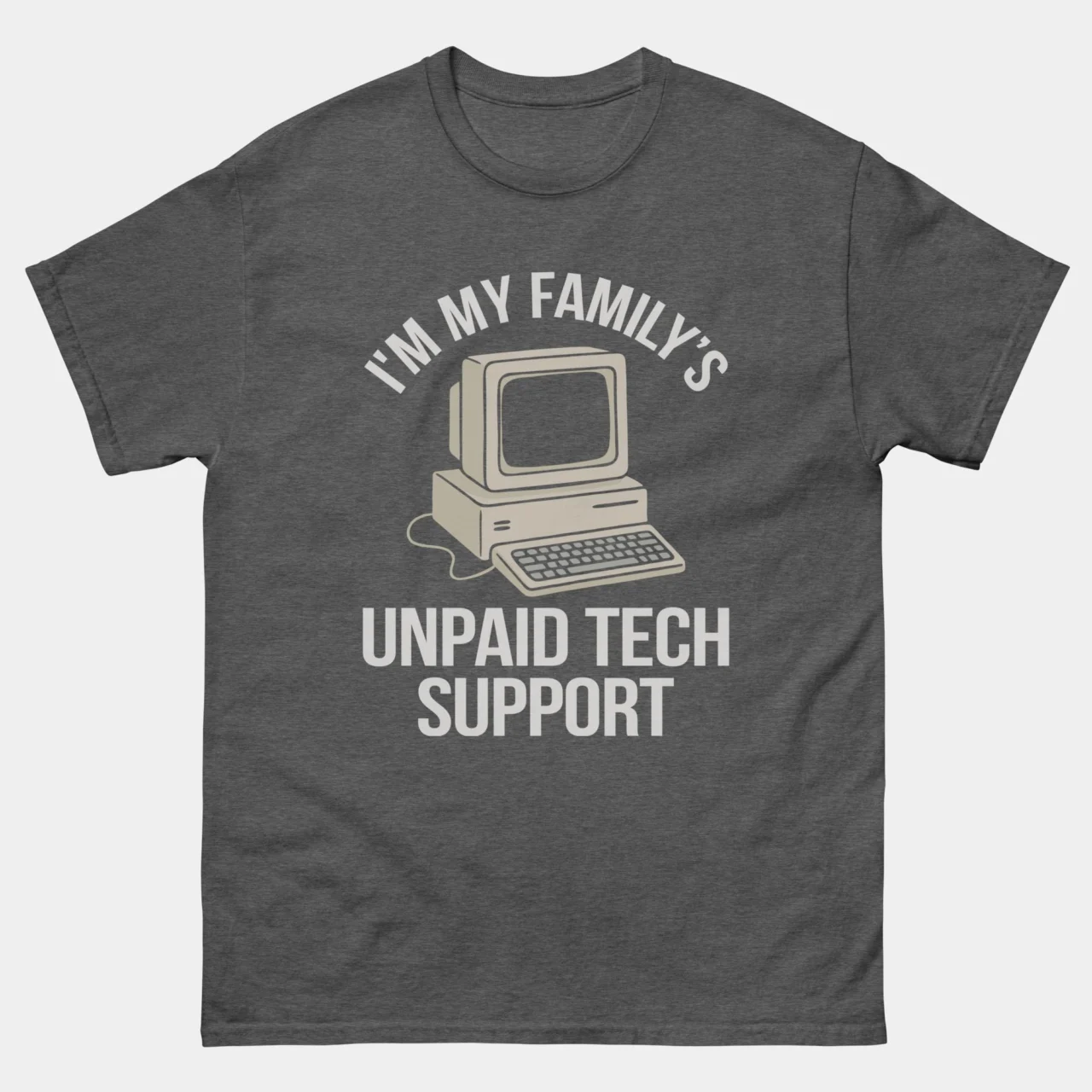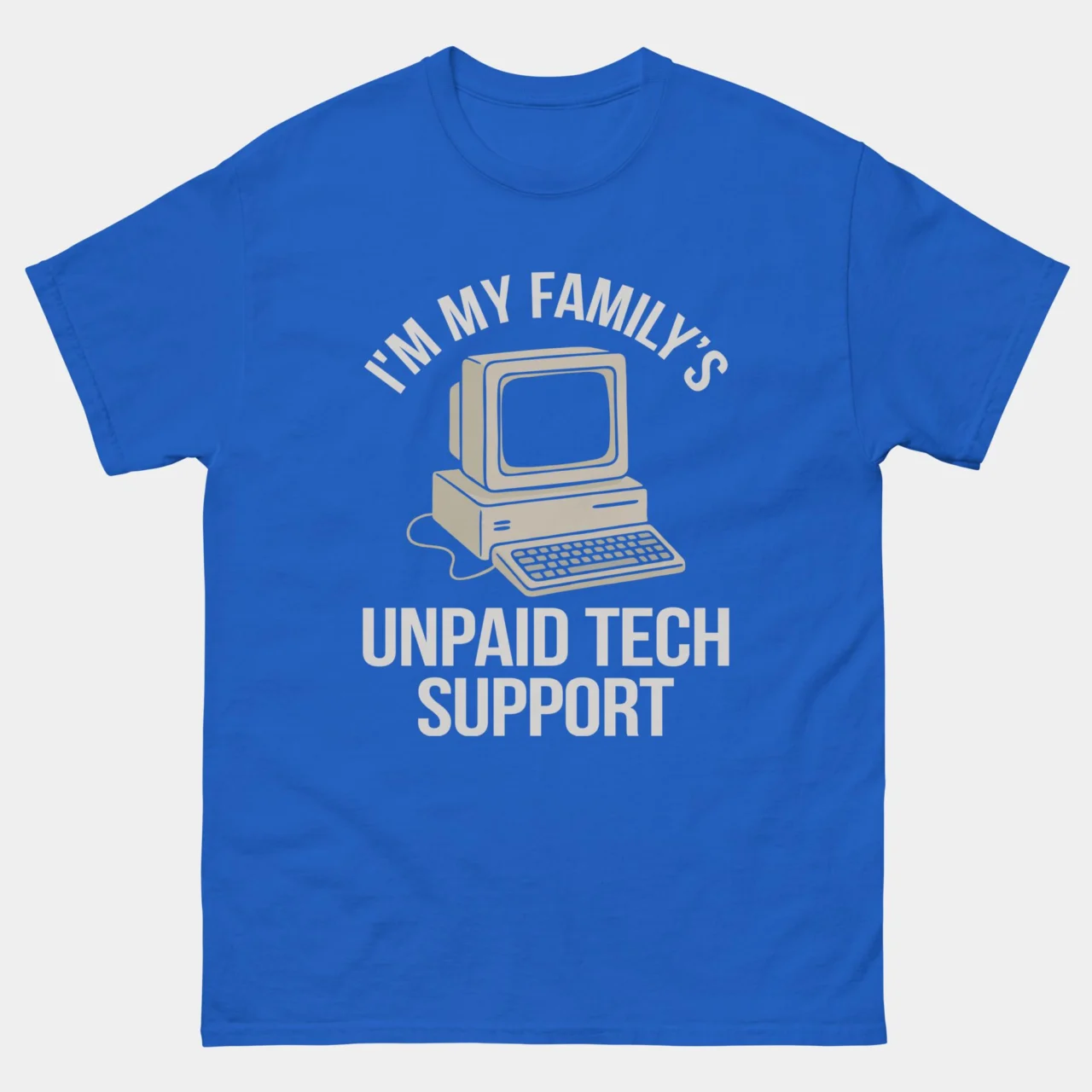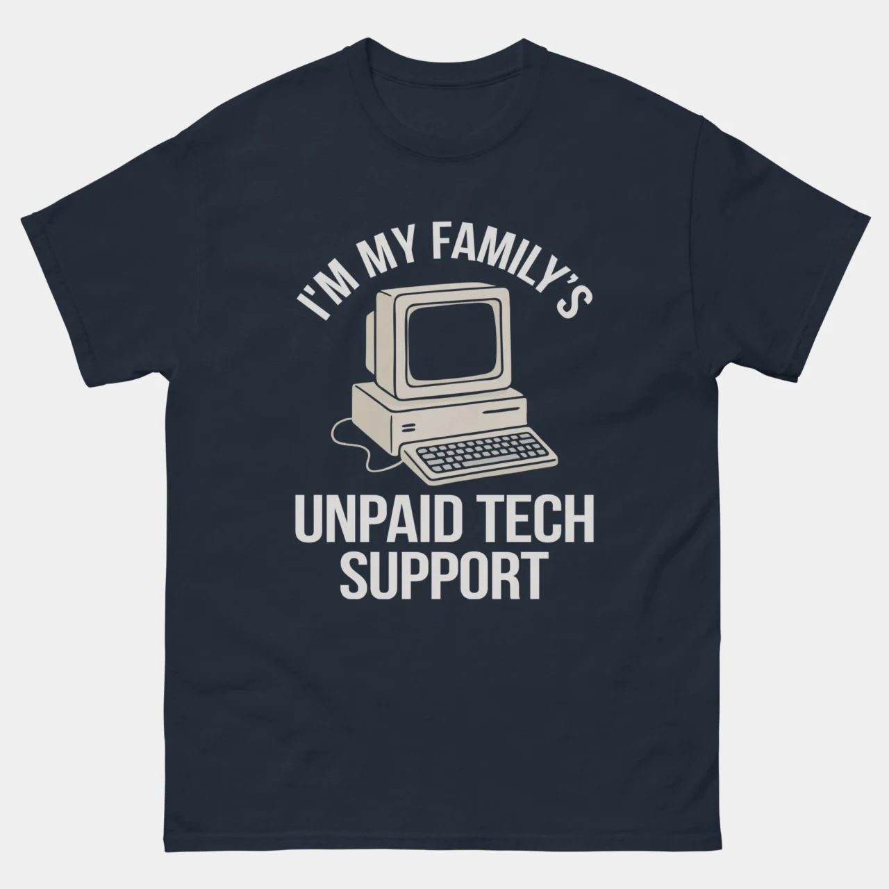 The curse of being the tech-savvy one! Every family has a dedicated (and unpaid) IT professional, and this shirt is their uniform. This In My Family’s Unpaid Tech Support T-Shirt instantly communicates the burden and the humor of being the go-to person for every password reset, printer malfunction, and “why is my Wi-Fi slow?” question.