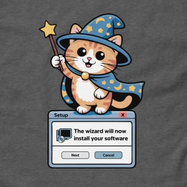 #InstallationWizard #WizardCat #TechNostalgia #DevHumor #CatProgrammer #SoftwareEngineering #ITLife #RetroTech #CodingLife #CuteTech
