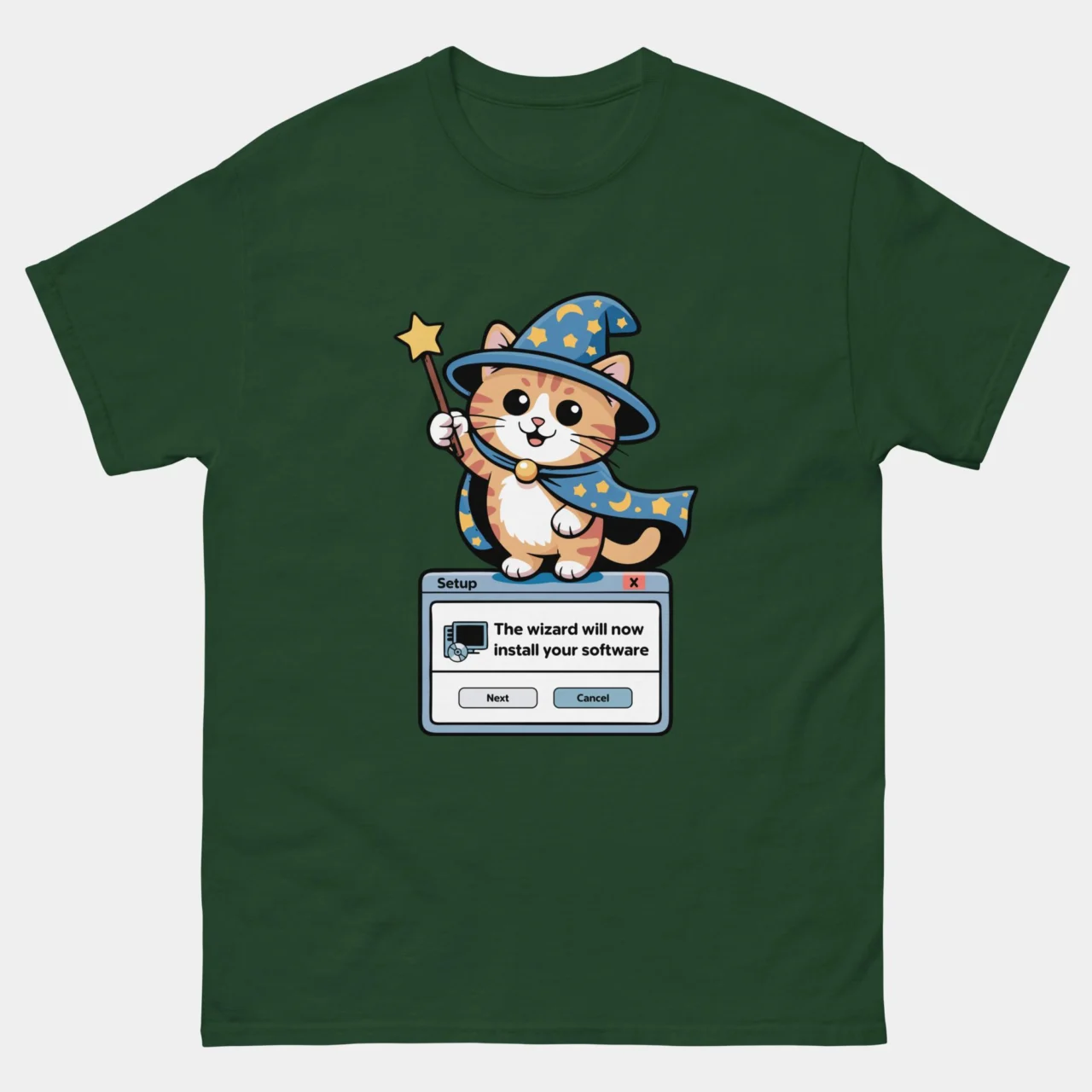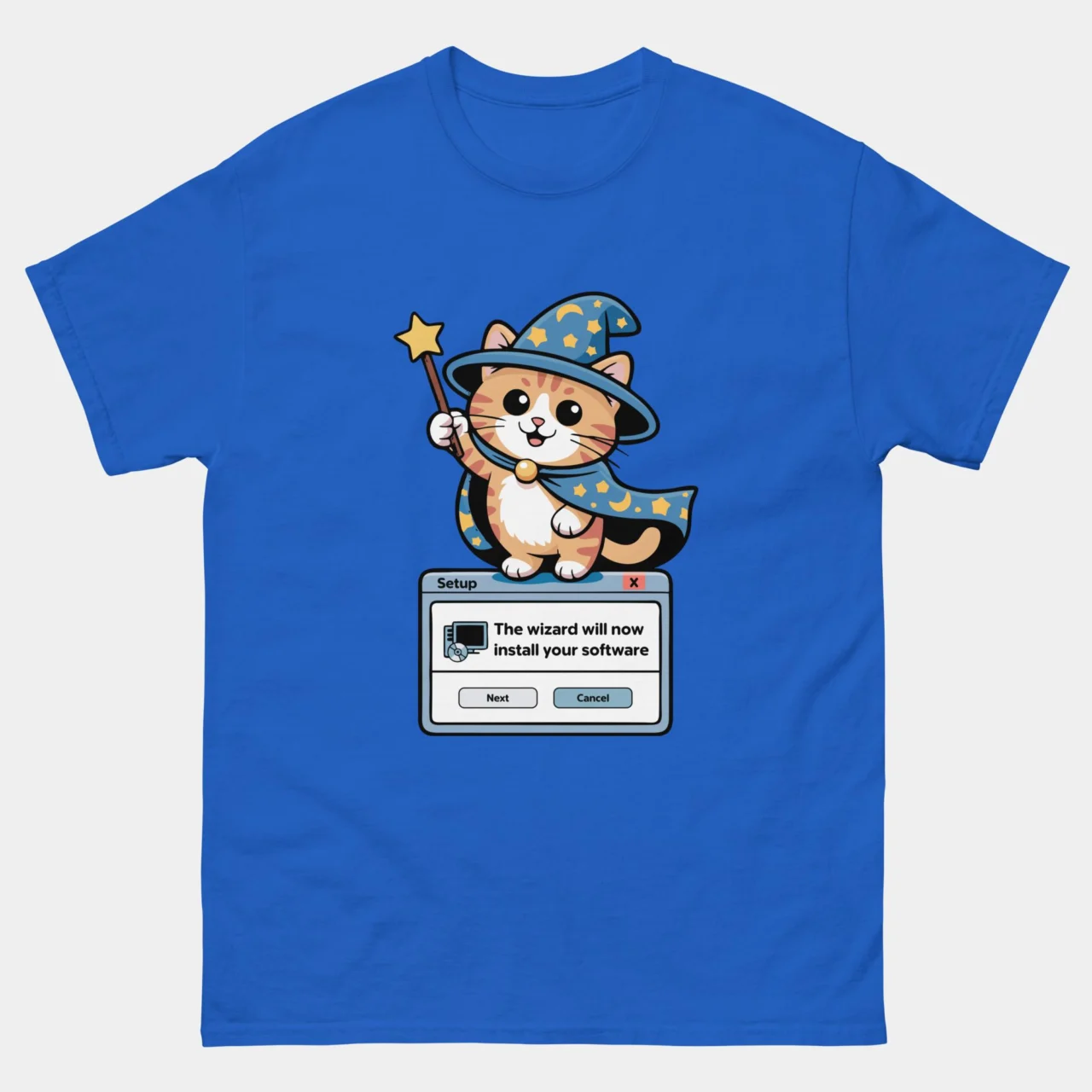 Installation Wizard Funny Cat T-Shirt, Retro Software Setup Tee, Cute Wizard Kitten Programmer Shirt, Gift for Techies & Cat Lovers