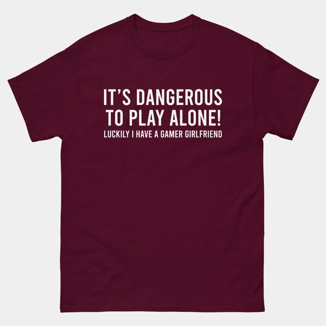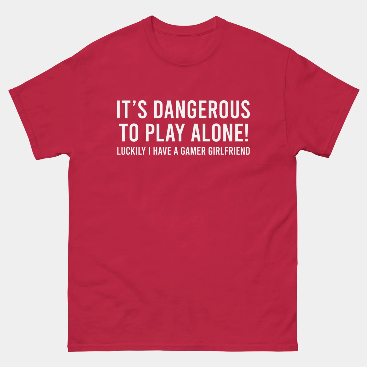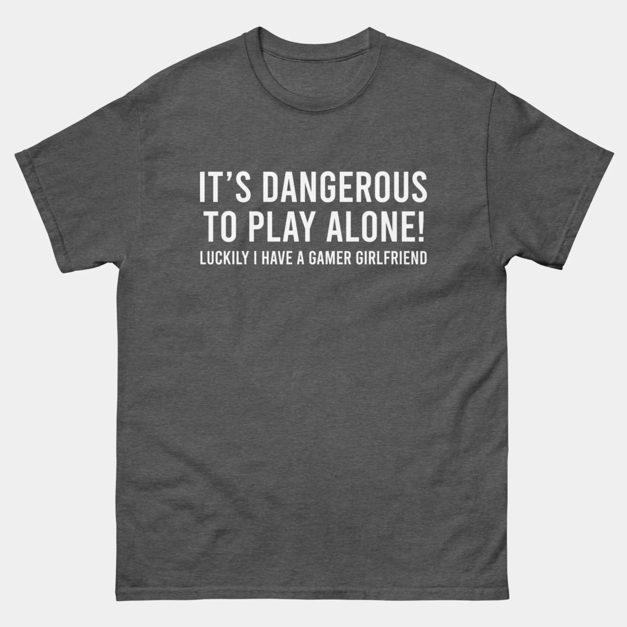 It Is Dangerous to Play Alone, Luckily I Have A Gamer Girlfriend T-Shirt – Gaming Couple Shirts – Gamer Boyfriend Tee – Classic Unisex Heavy Cotton T-Shirt by Tech Geeks Apparel: