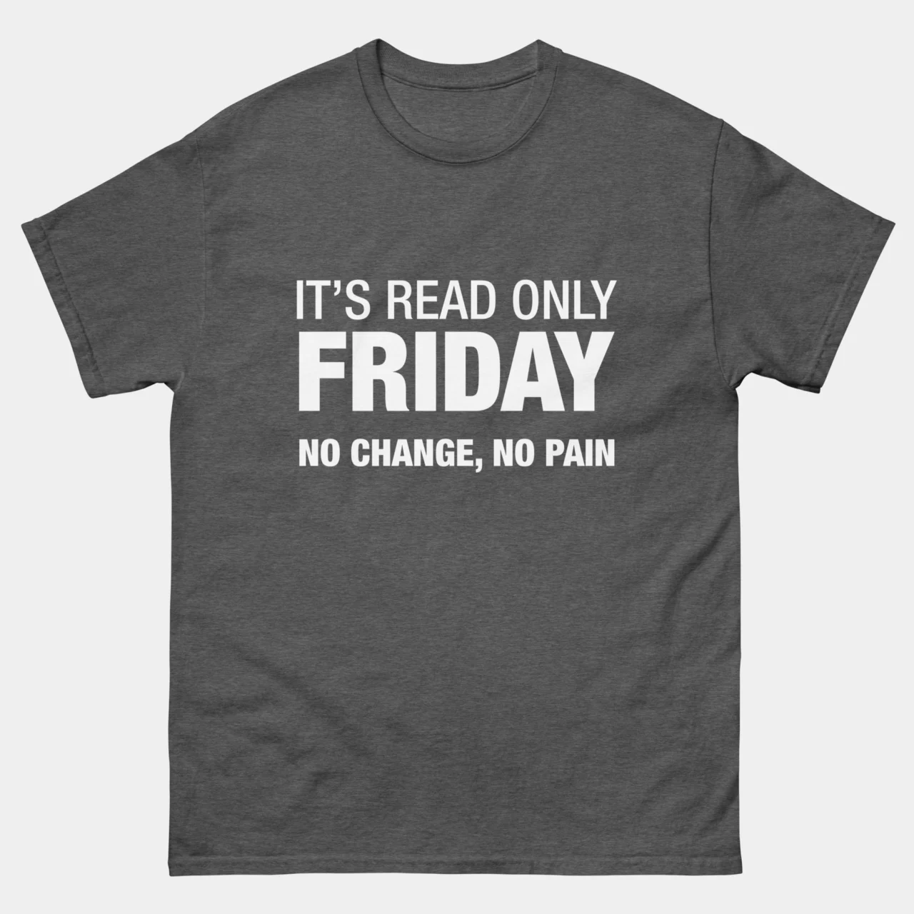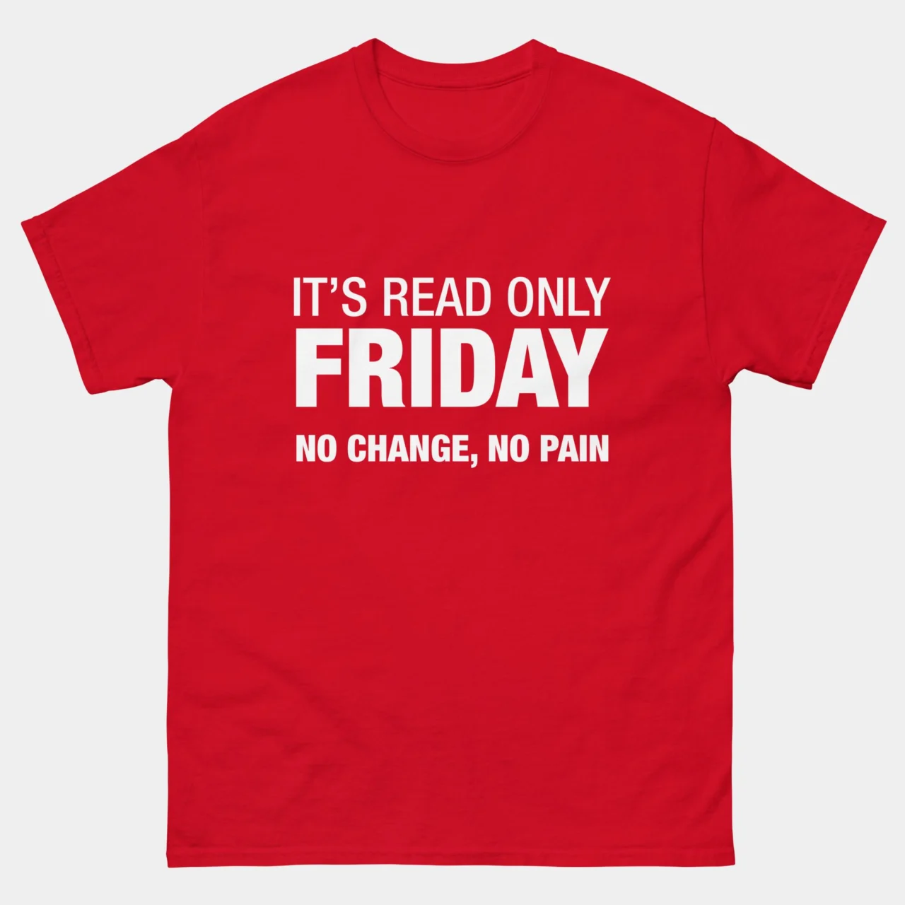 Its Read Only Friday No Change No Pain T-Shirt – Funny Sysadmin Shirt – IT Operations Engineer Tee – DevOps Server Admin Humor – Classic Unisex Heavy Cotton T-Shirt by TechGeeksApparel: