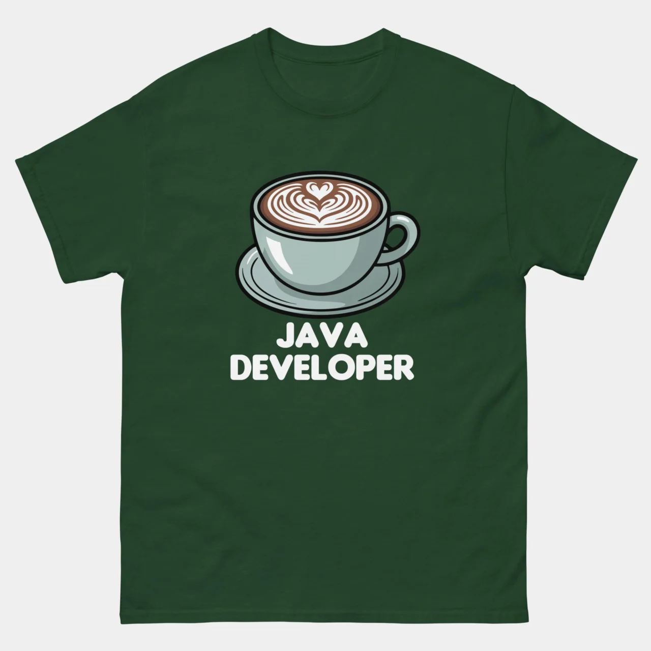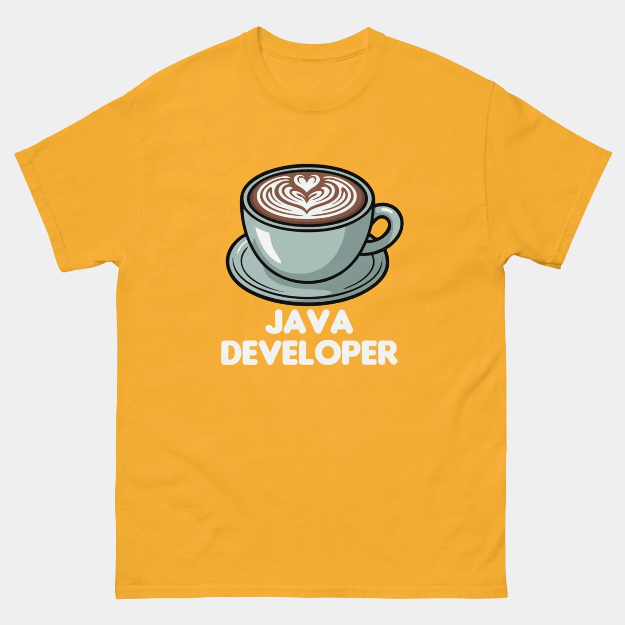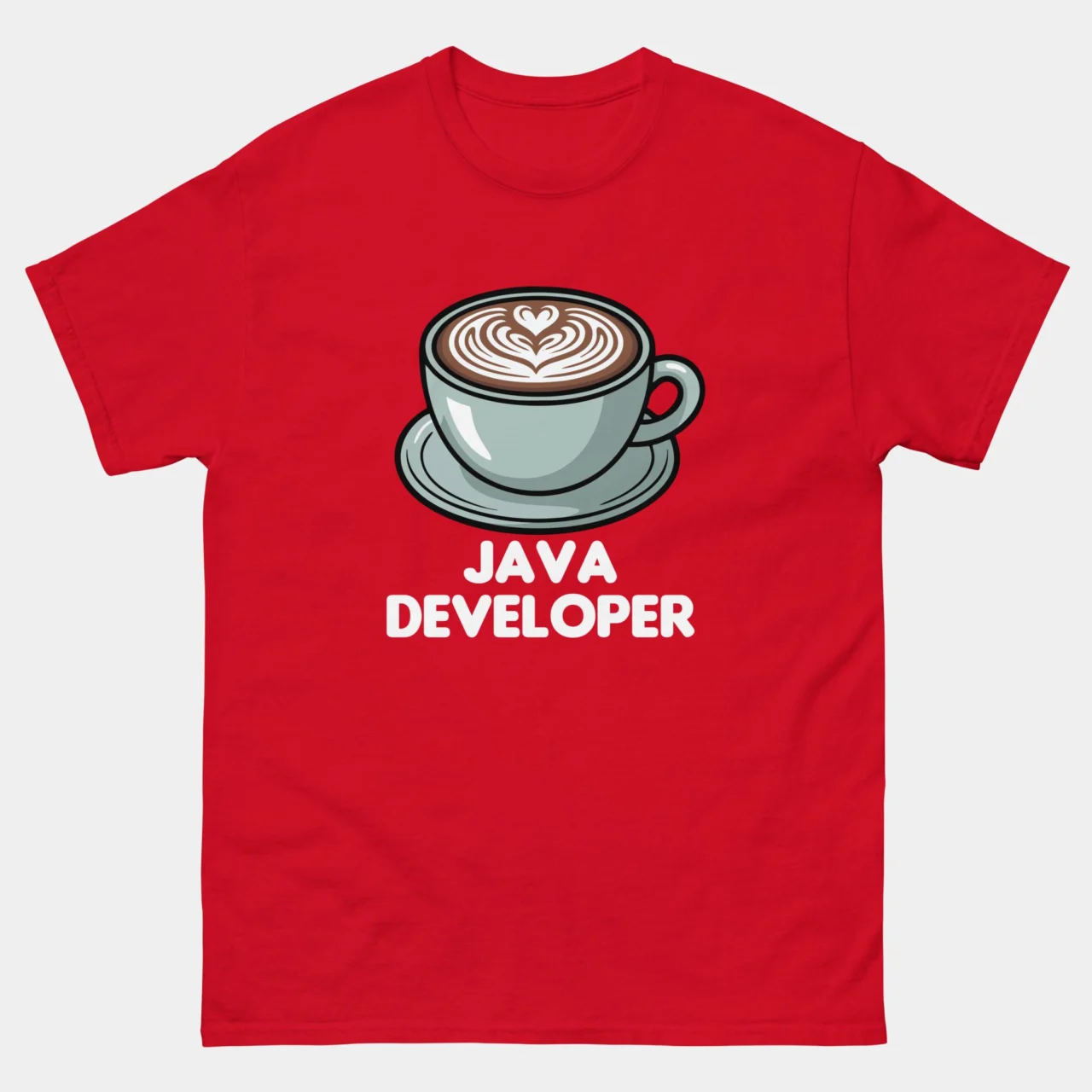 #JavaDeveloper #CoffeeAndCode #ProgrammerLife #SoftwareEngineering #JavaProgramming #TechFashion #DevLife #CaffeinePowered #FunnyTshirts #CodingHumor