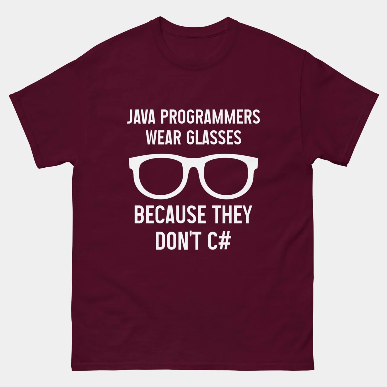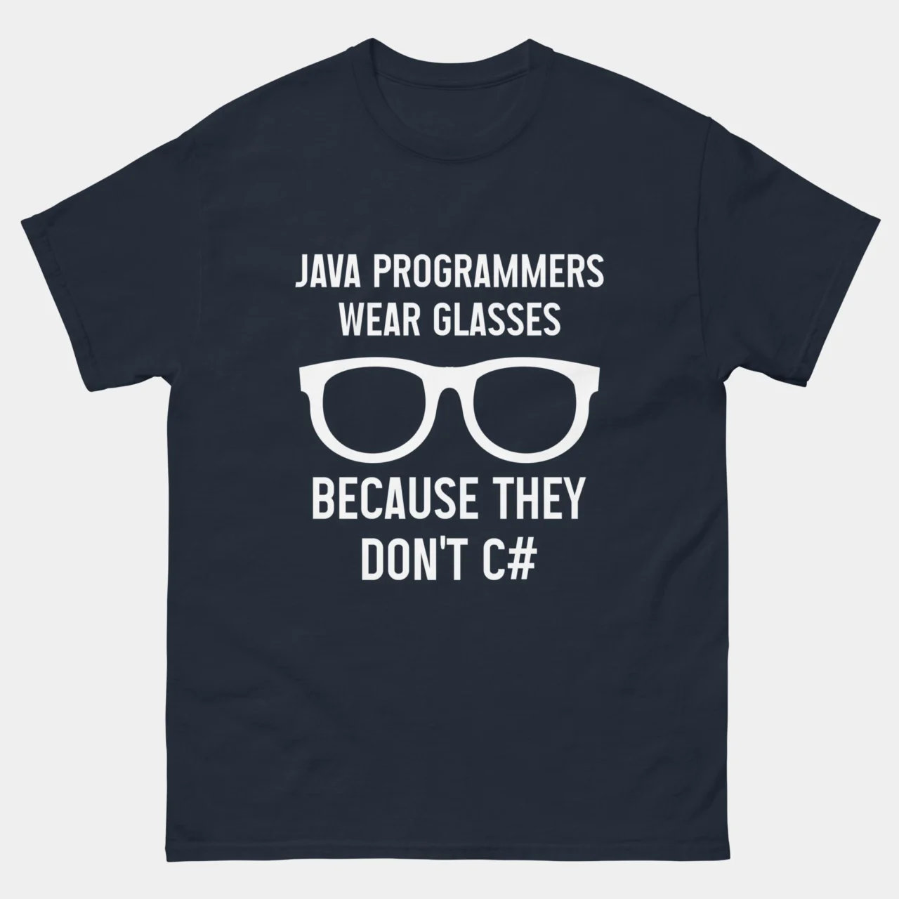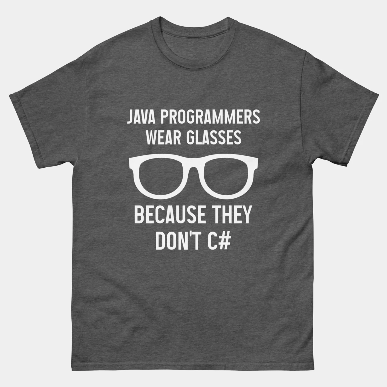 Java Programmers Wear Glasses Funny T-Shirt – Because They Don’t C# – Funny Programming Coding Language Joke – Software Developer Gift – Nerdy IT Humor Tee