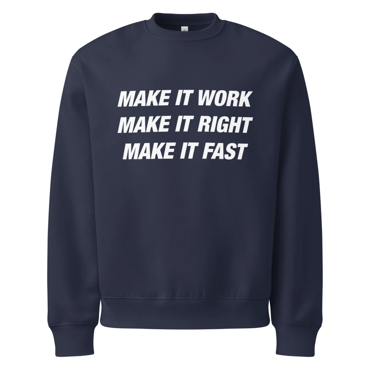Make It Work Make It Right Make It Fast Oversized Sweatshirt – Funny Programmer Coder Life Pullover – Software Developer Mantra Gift – Heavyweight Fleece