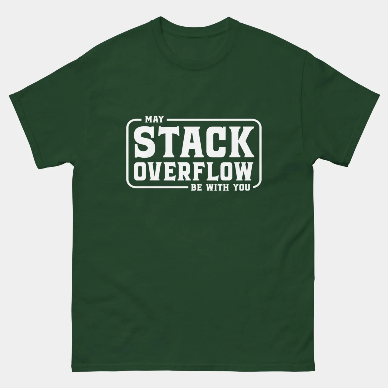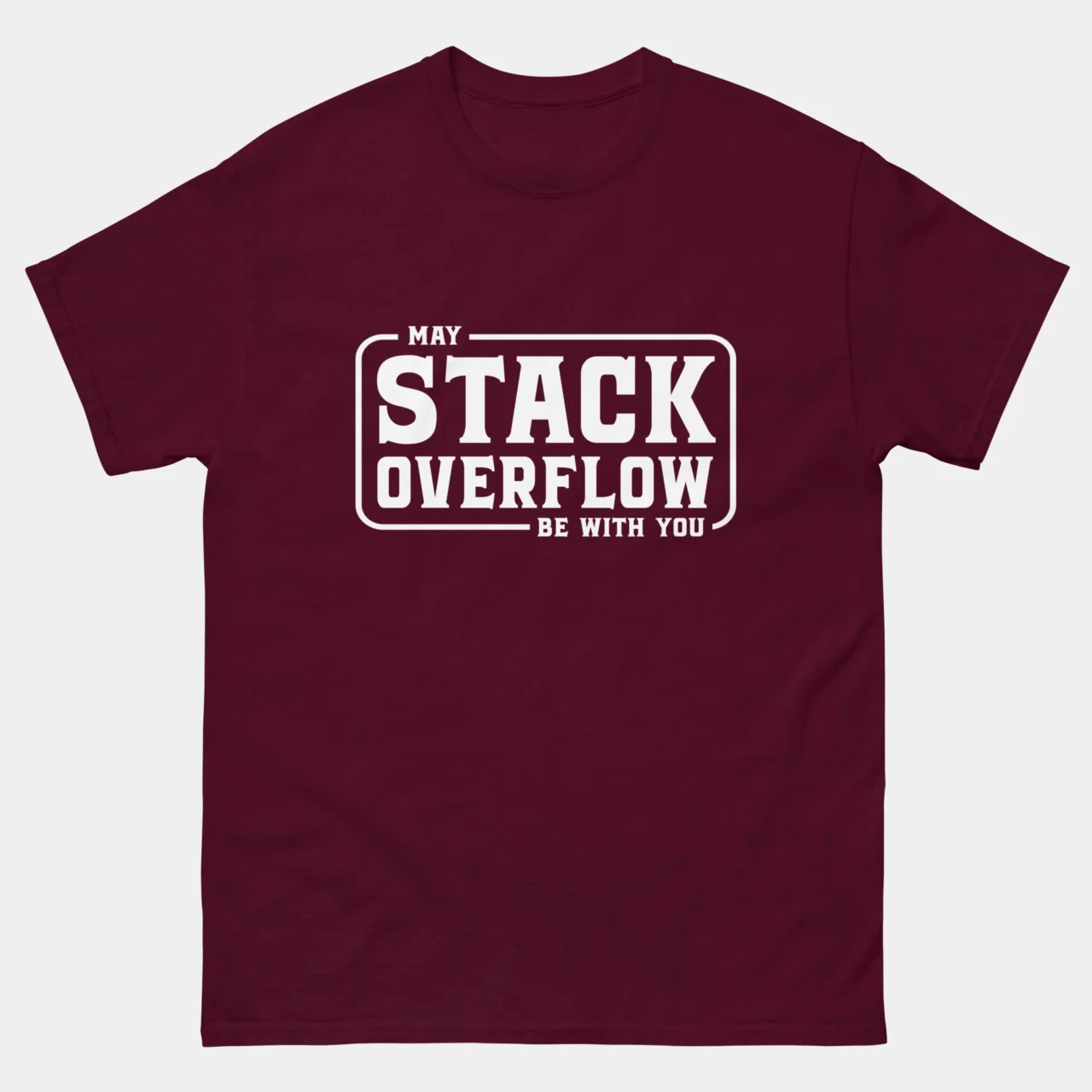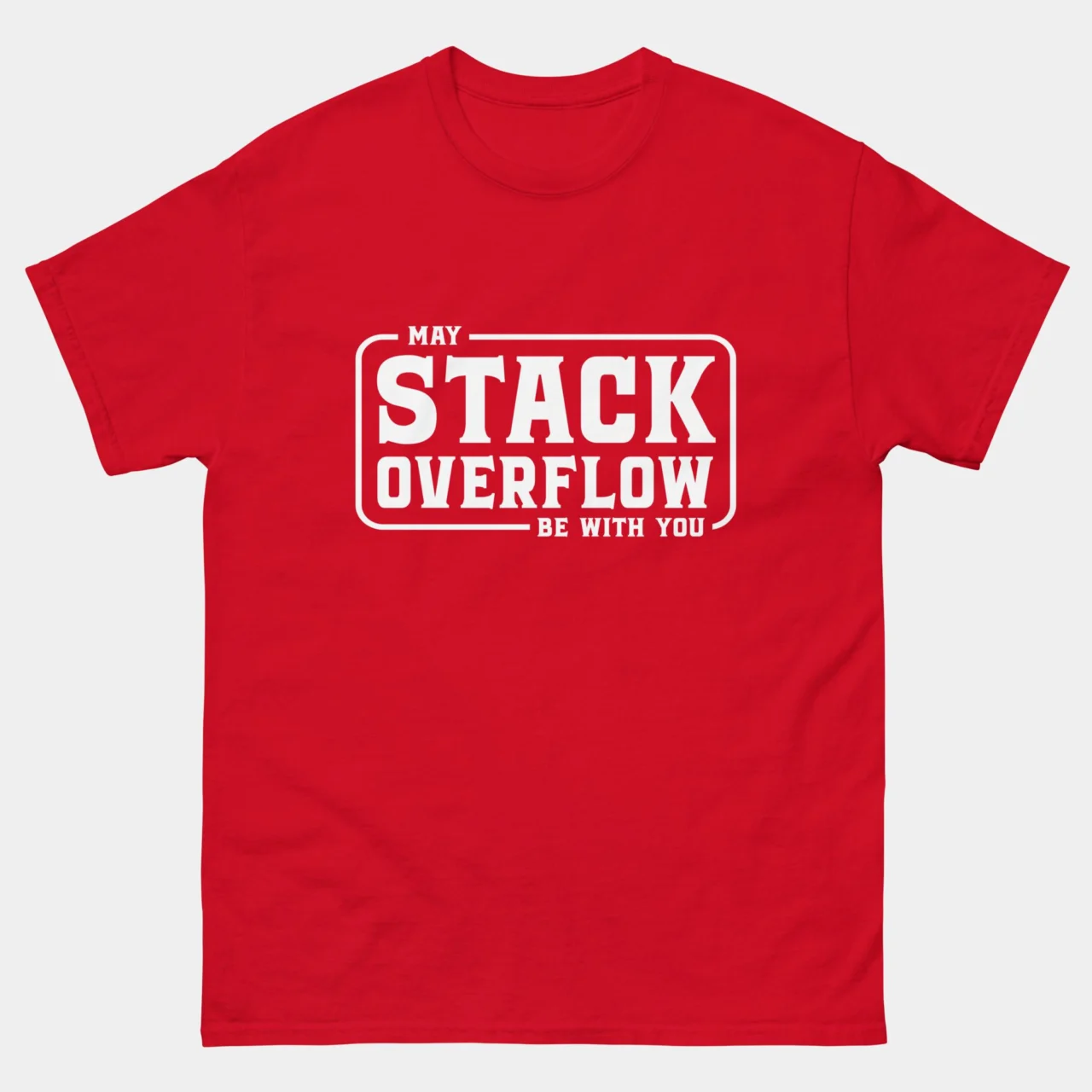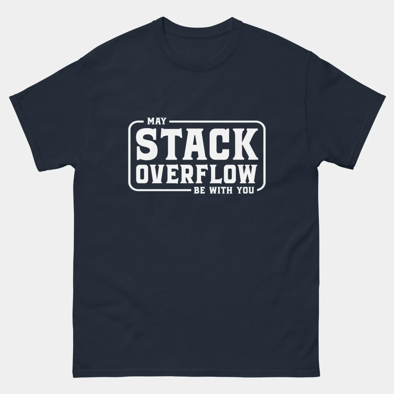 May The Stack Overflow Be With You T-Shirt – The only real force that powers developers through broken builds and endless errors. This parody tee is perfect for coders who depend on copy-paste salvation and sci-fi motivation to make it through the workday.
