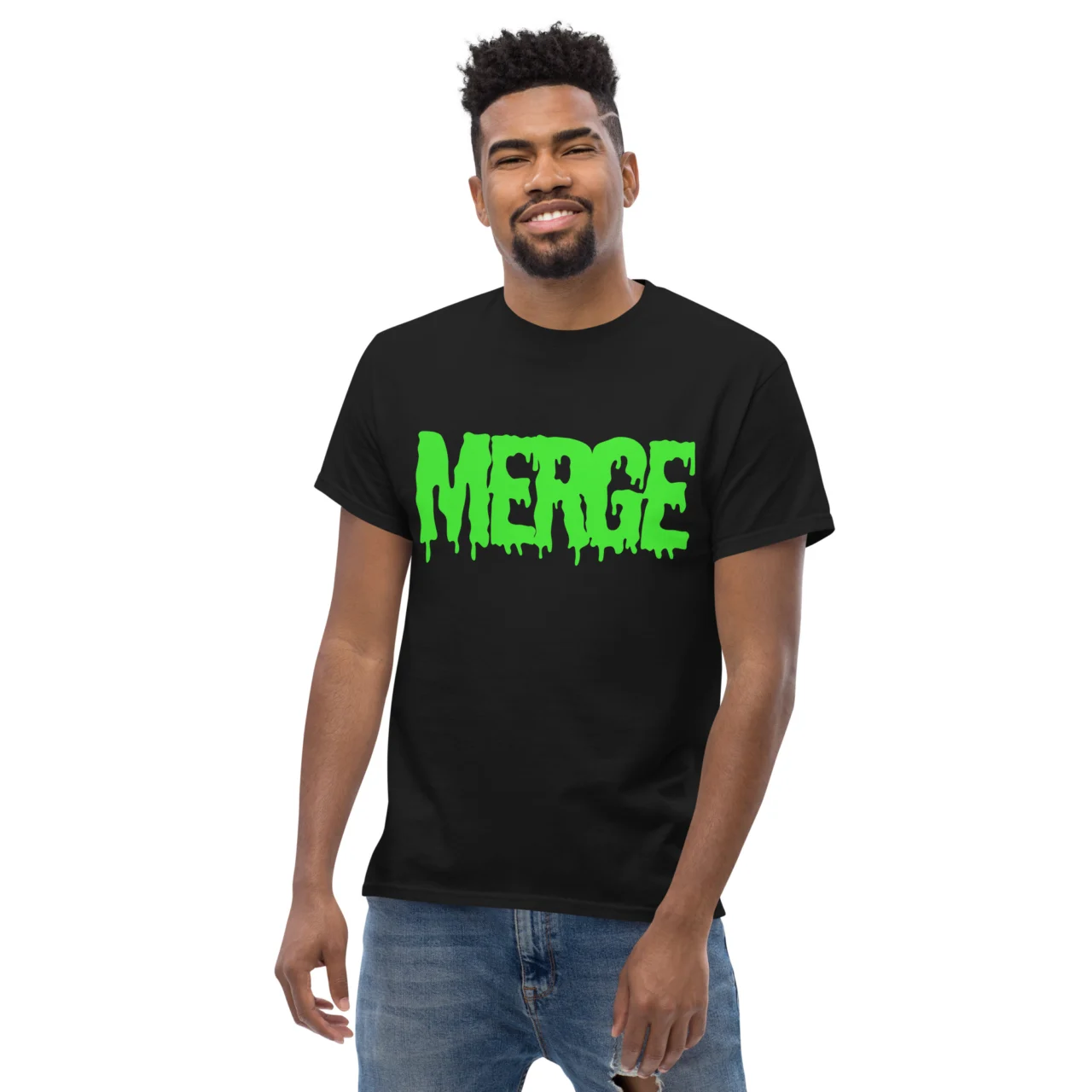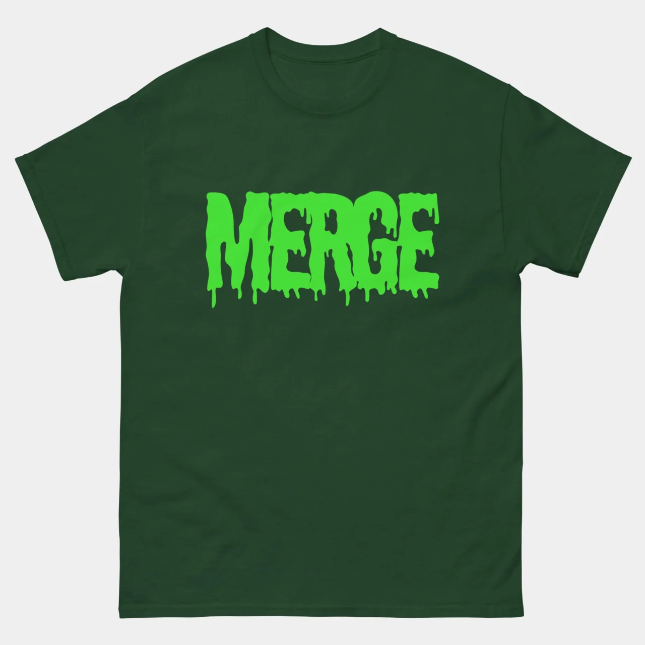 Merge Funny Programmer T-Shirt, Neon Green Slime Git Humor Tee, Retro Toxic Style Software Engineer Shirt, Gift for Web Developers & DevOps Engineers
