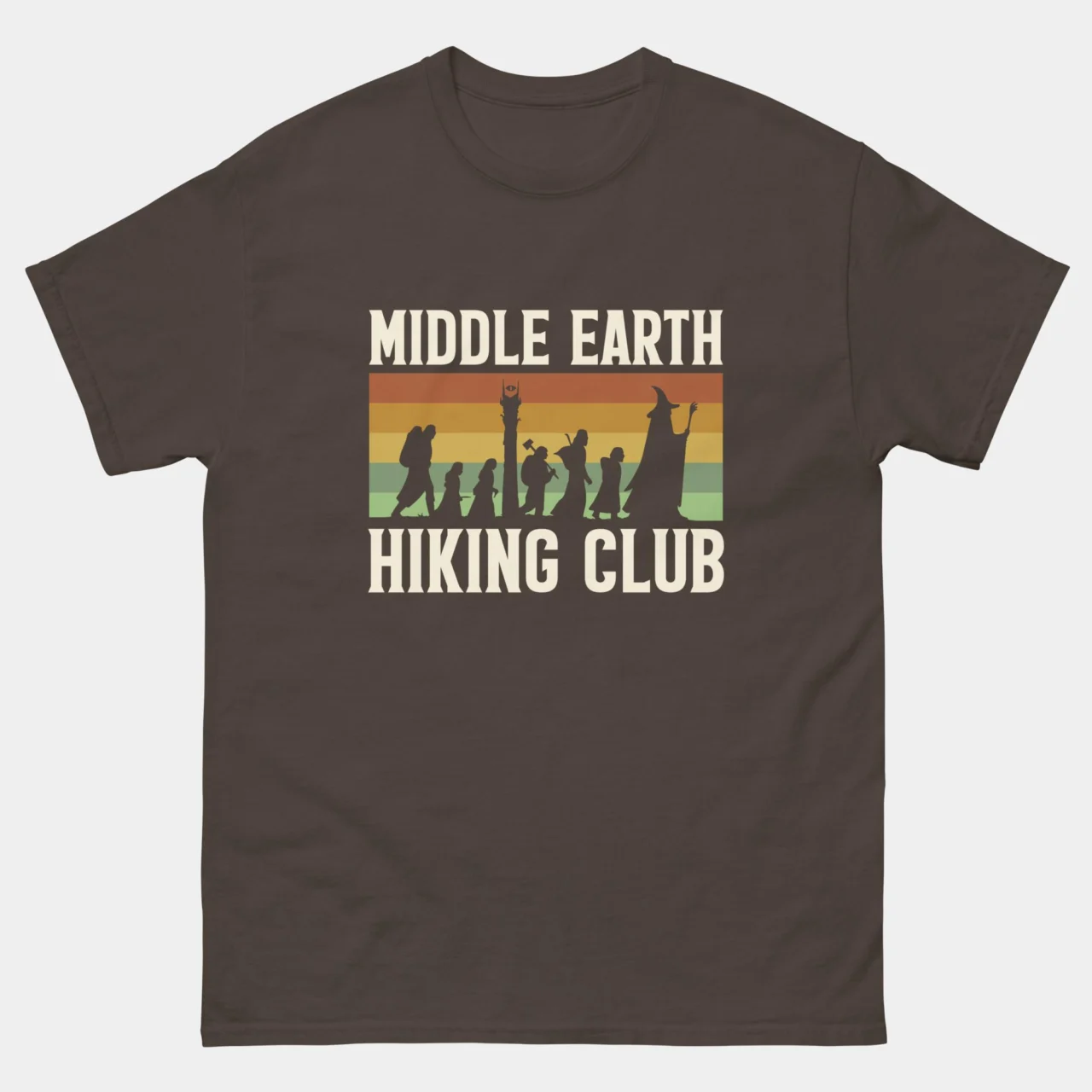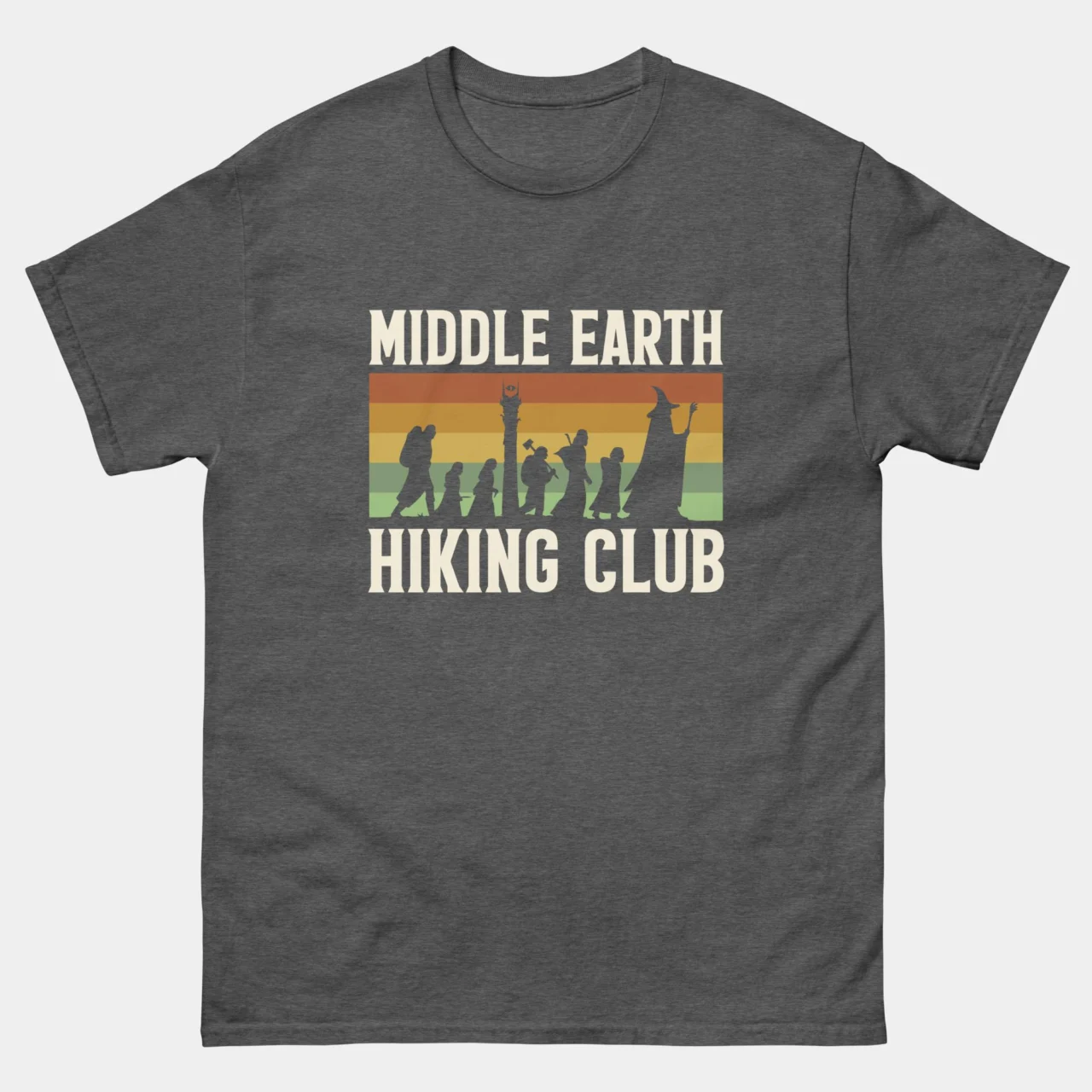 Buy Middle Earth Hiking Club T-Shirt. Join the most epic hiking group in literature with the Middle Earth Hiking Club tee. Perfect for fantasy fans, adventurers, and nature lovers.