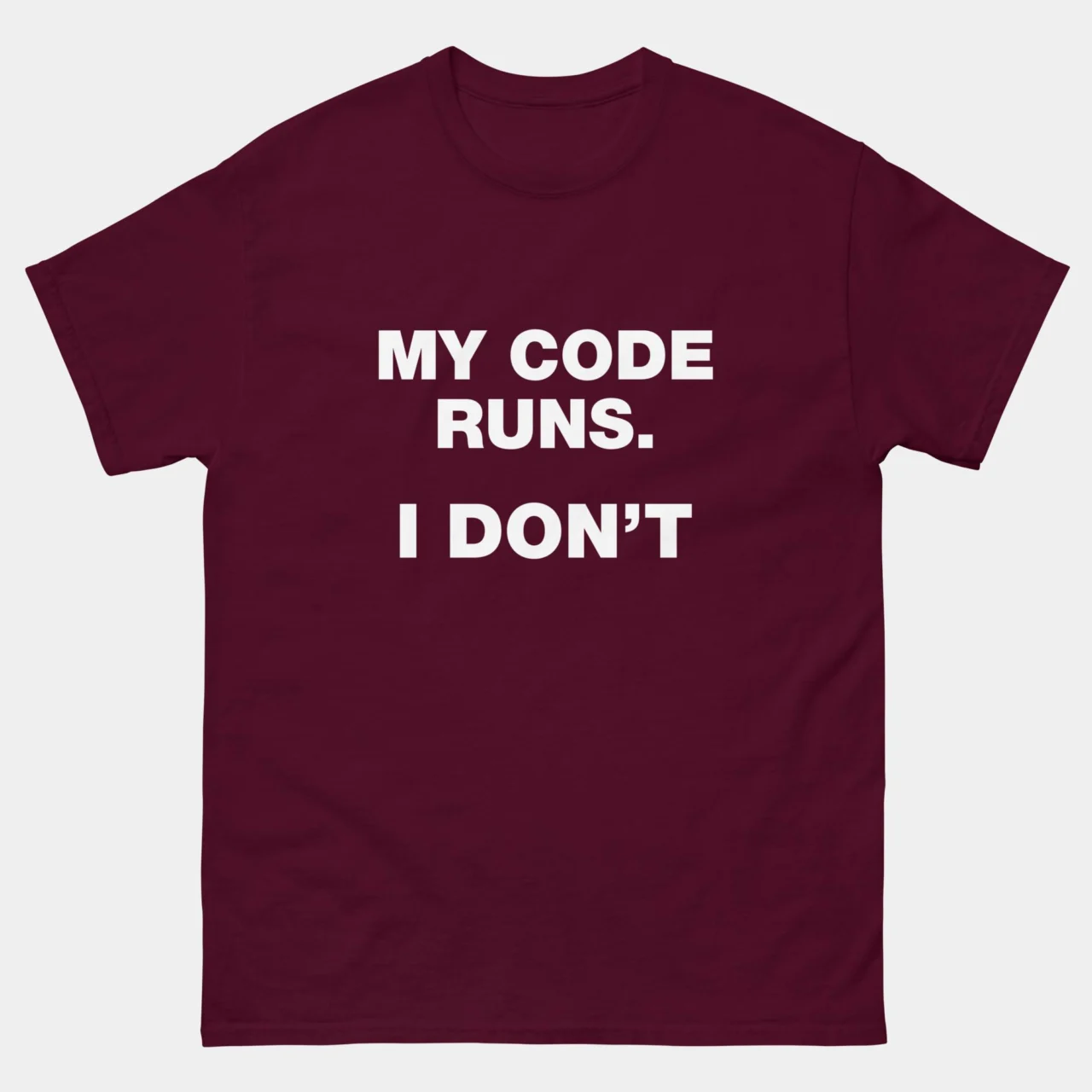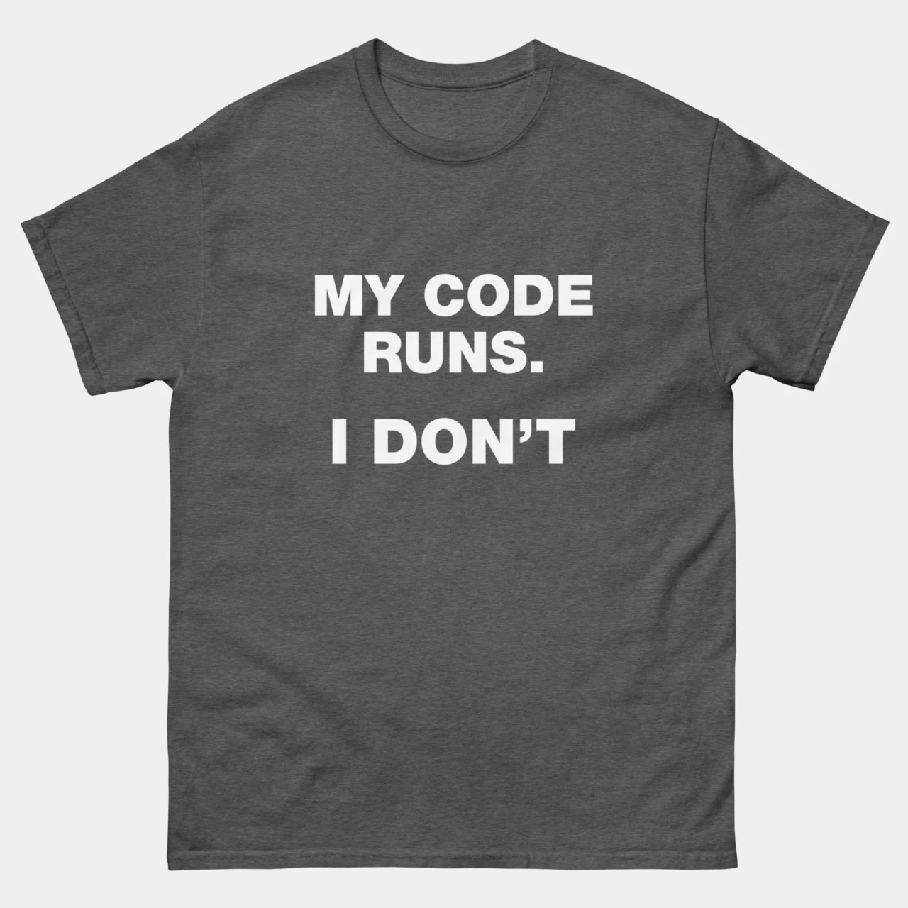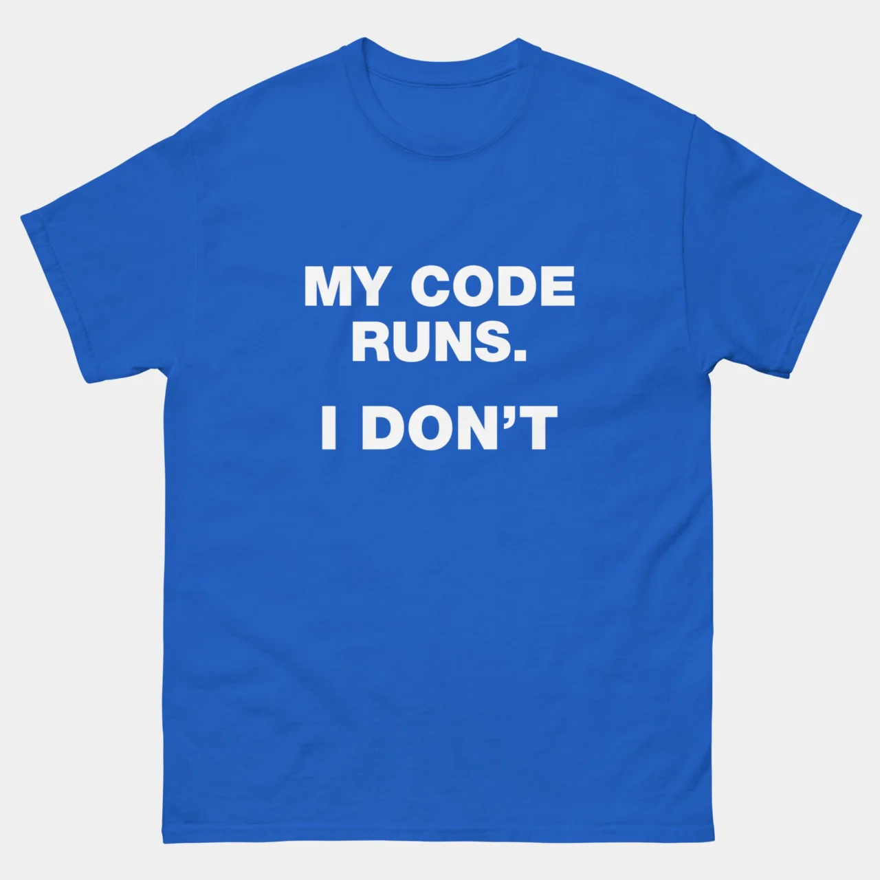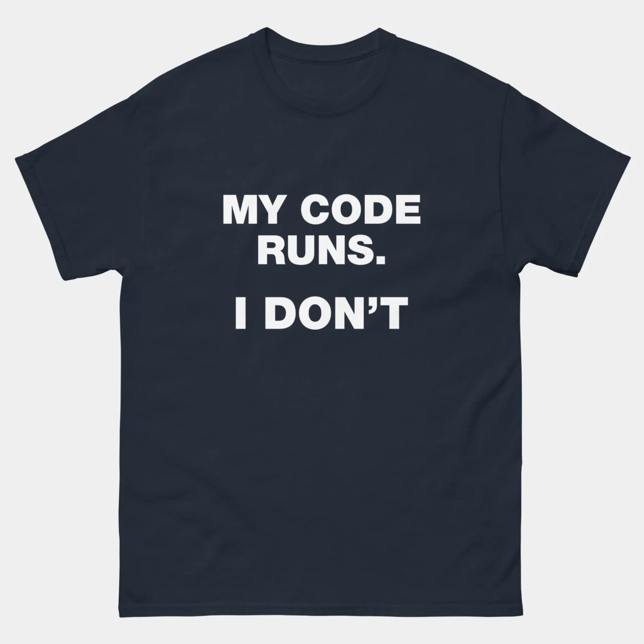 My Code Runs I Dont T-Shirt – Funny Coding Shirt – Software Developer Humor – Programmer Life Tee – IT Professional Gift – Classic Unisex Heavy Cotton T-Shirt by Tech Geeks Apparel: