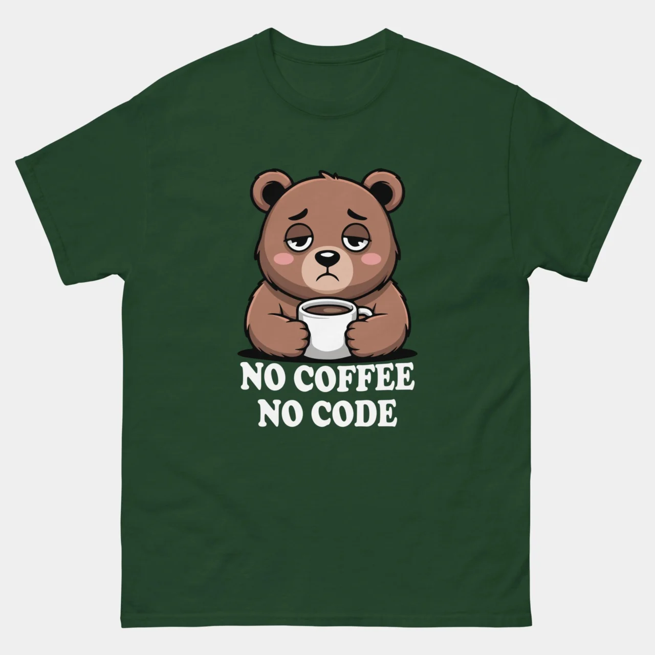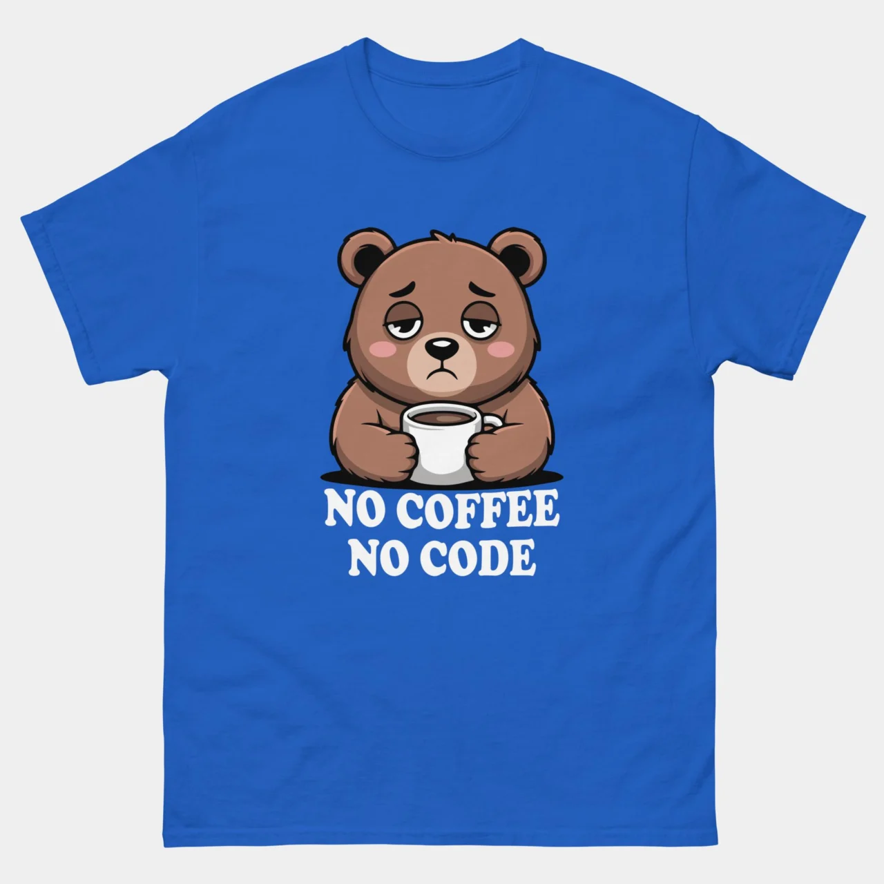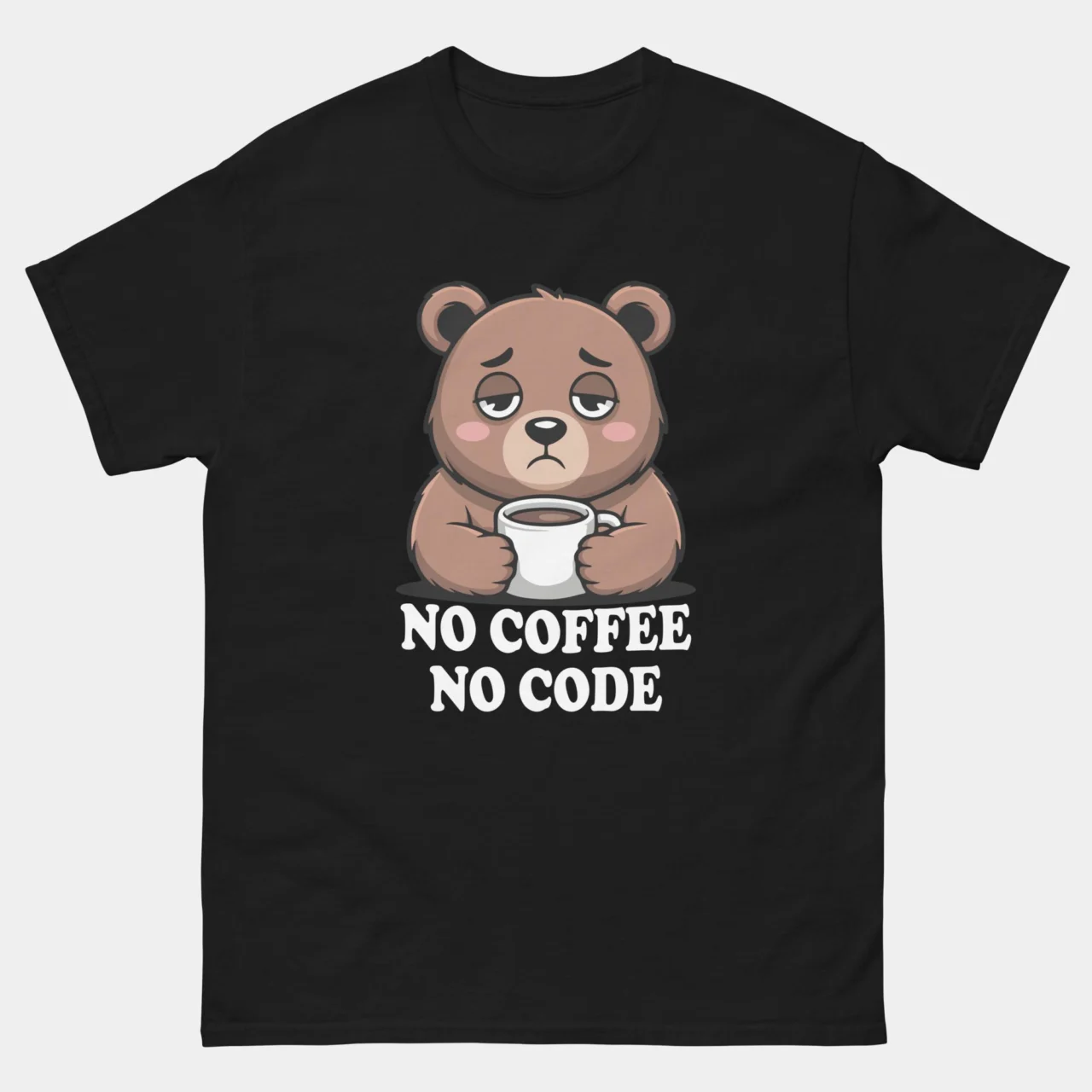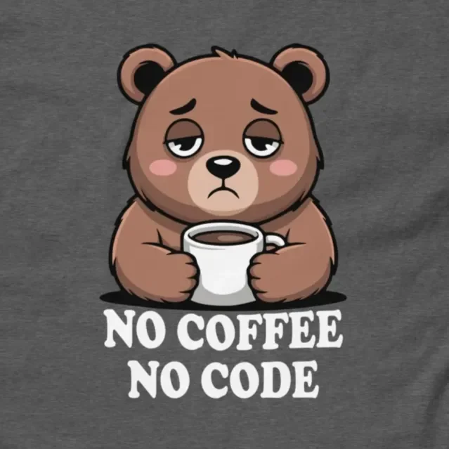#NoCoffeeNoCode #ProgrammerLife #CodingHumor #DevLife #CaffeinePowered #GrumpyBear #TechFashion #SoftwareEngineer #DeveloperCommunity #FunnyTshirts