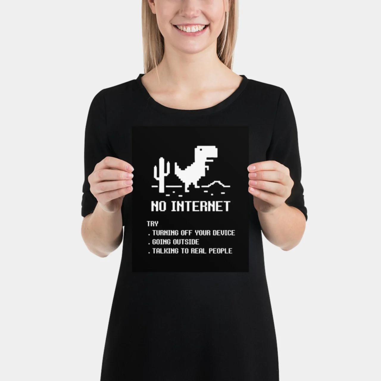 This “No Internet” T-Rex Poster is the perfect piece of Tech Humor Wall Decor. It’s instantly recognizable and makes a fantastic Geeky Coder Gift or a fun addition to a home office, dorm room, or man cave. It serves as a great reminder that maybe, just maybe, the internet is holding us captive.