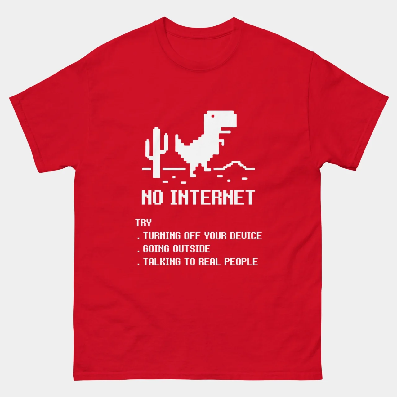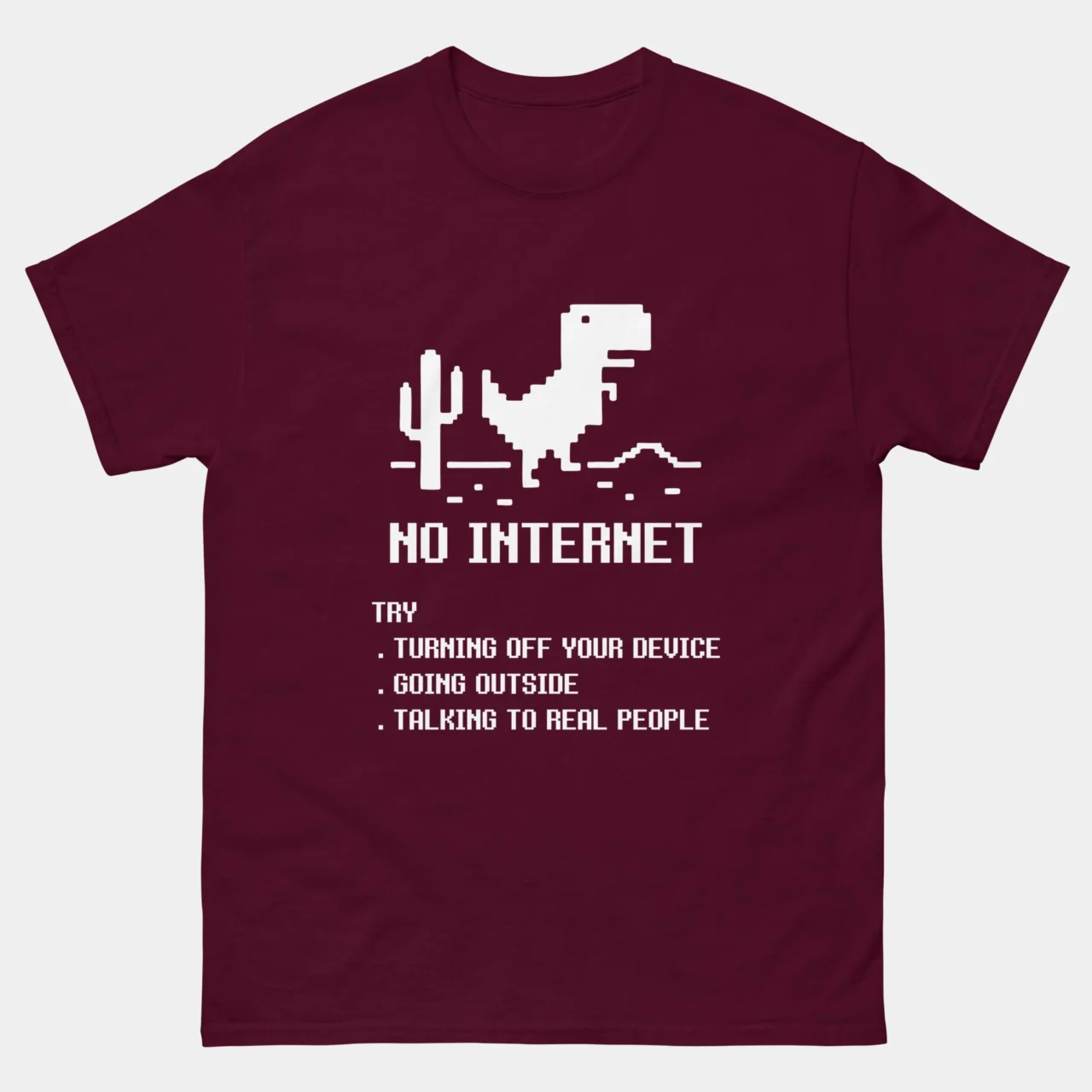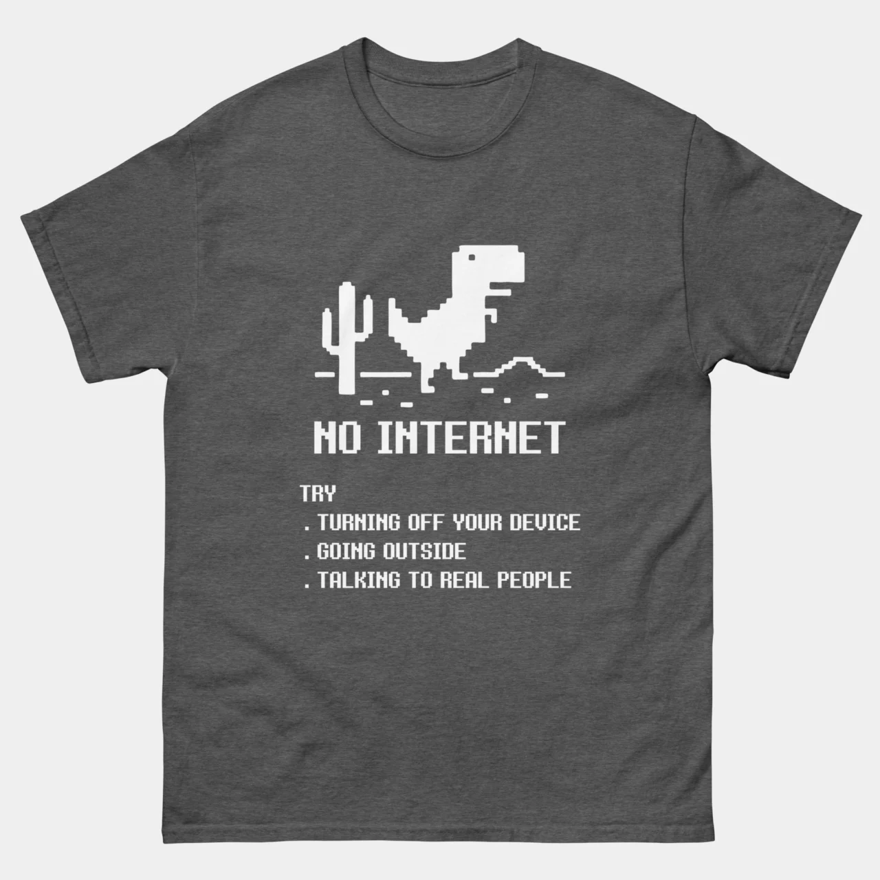No Internet Try Turning Off Your Device T-Shirt – Funny Offline Dinosaur Game Shirt – Tech Humor Tee – Anti Social Geek Gift