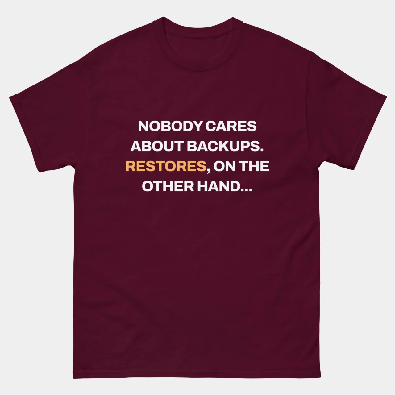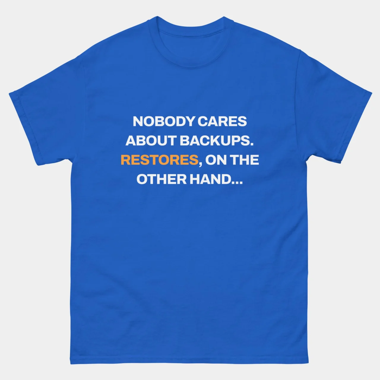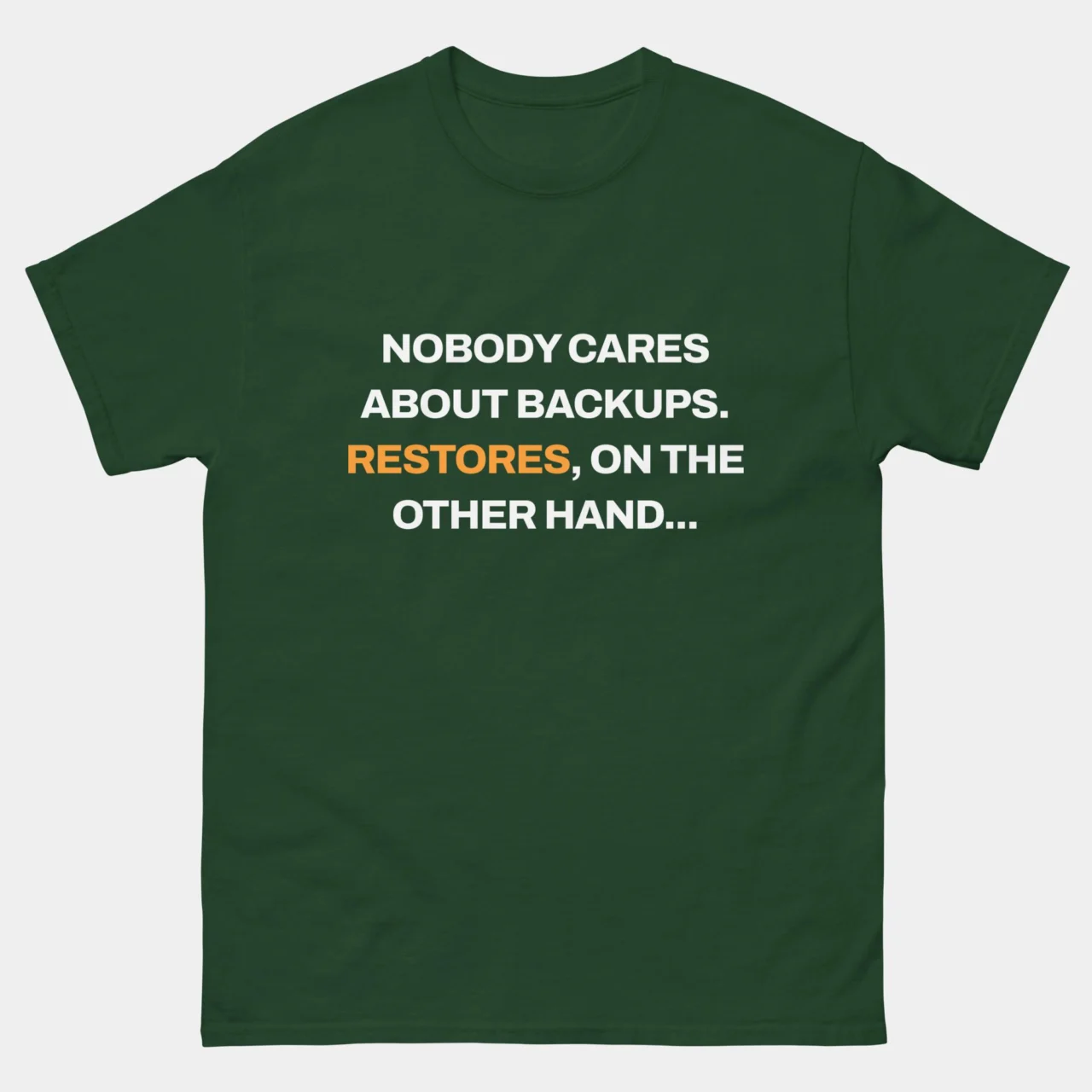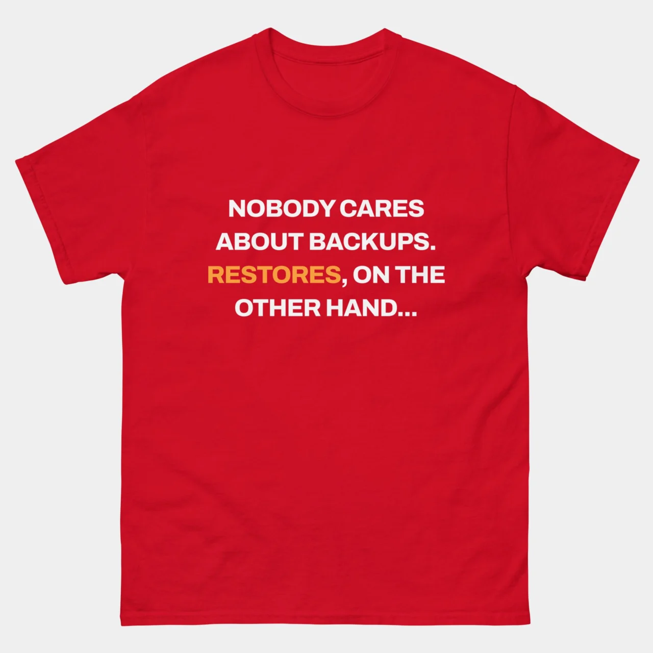 For the IT pro who knows that the “Backup Successful” notification is just the beginning. This classic Nobody Cares About Backups T-Shirt delivers the ultimate reality check for anyone managing enterprise data: