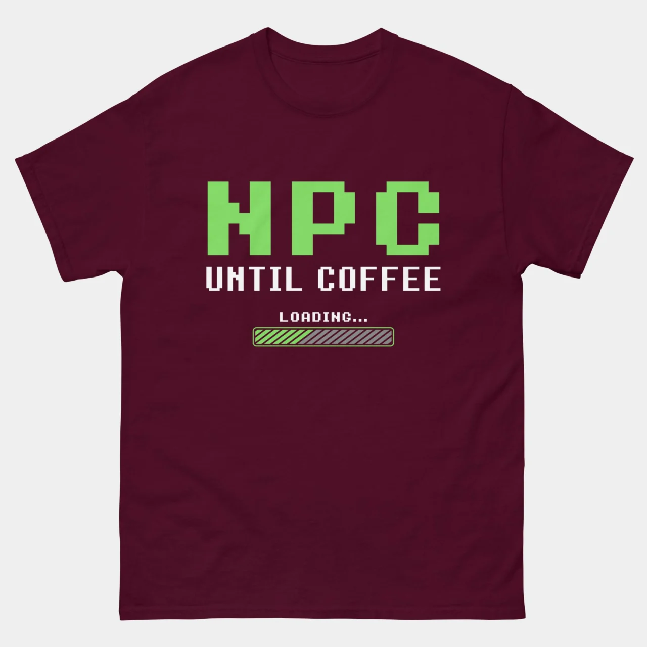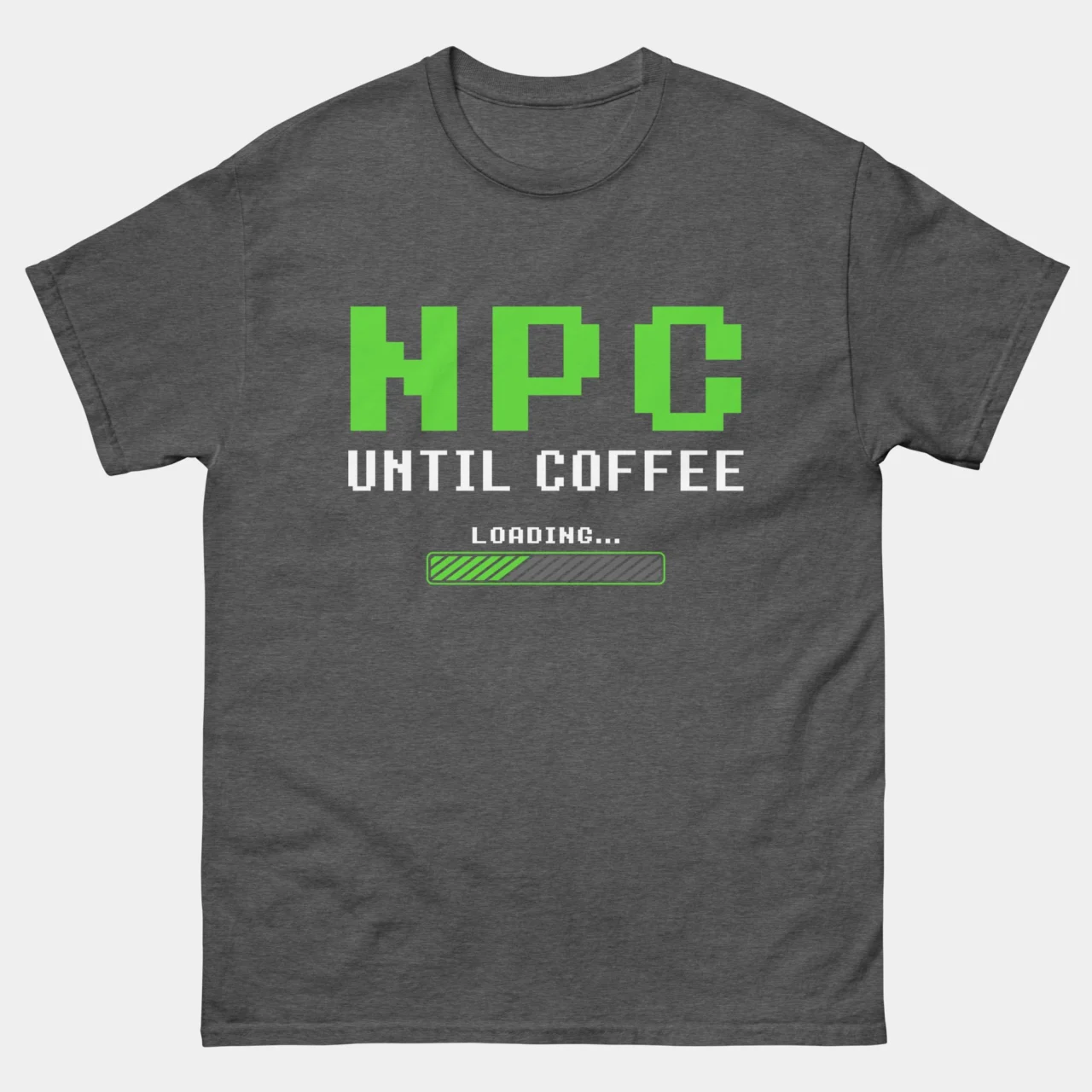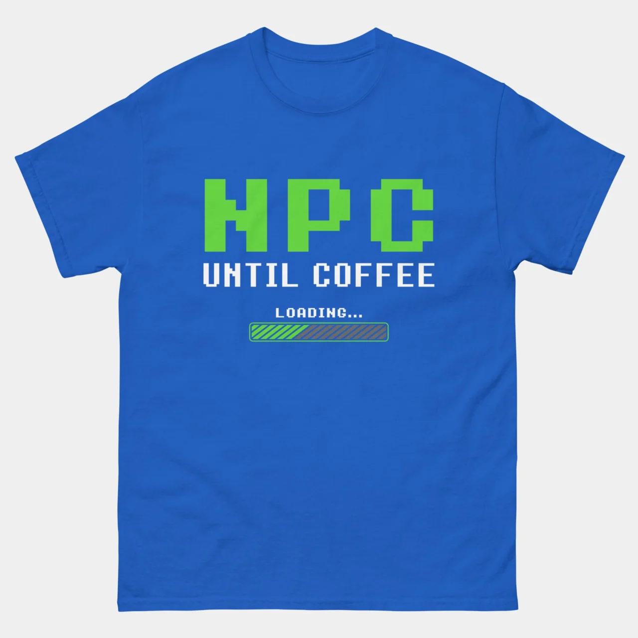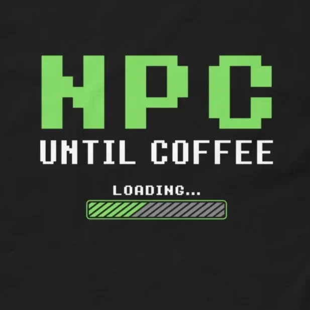 #NPCUntilCoffee #GamerLife #RetroGaming #CoffeeAddict #PixelArt #LoadingBar #GamingHumor #CaffeineFix #FunnyTshirts #GeekStyle