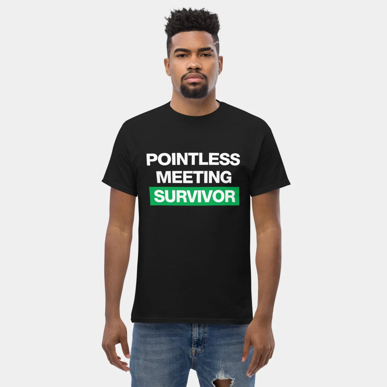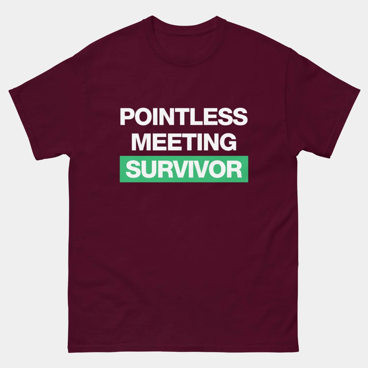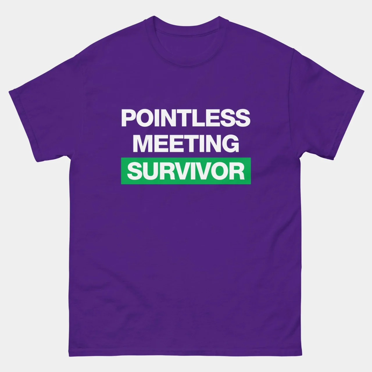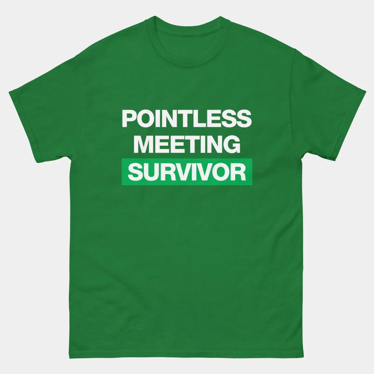 Buy Pointless Meeting Survivor T-Shirt. If you’ve sat through endless meetings that could’ve been an email, this shirt is your badge of honor.