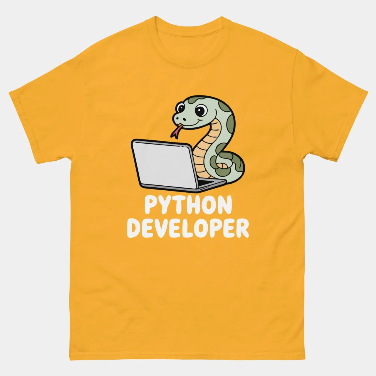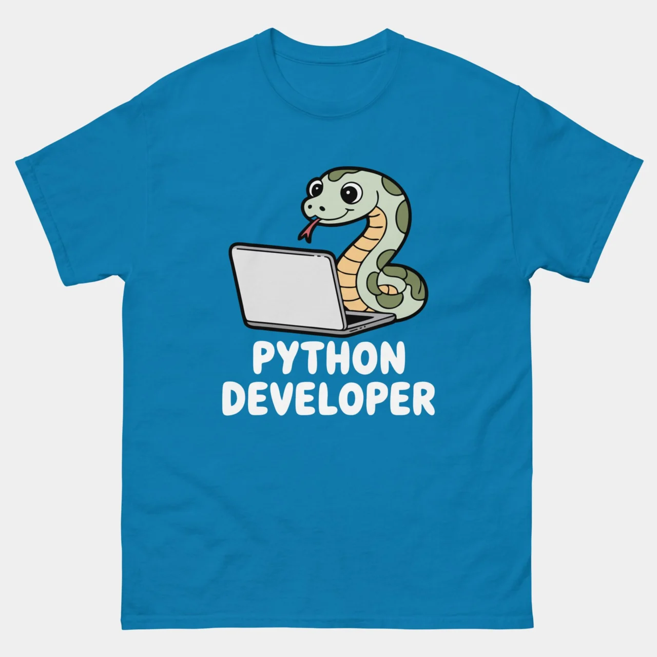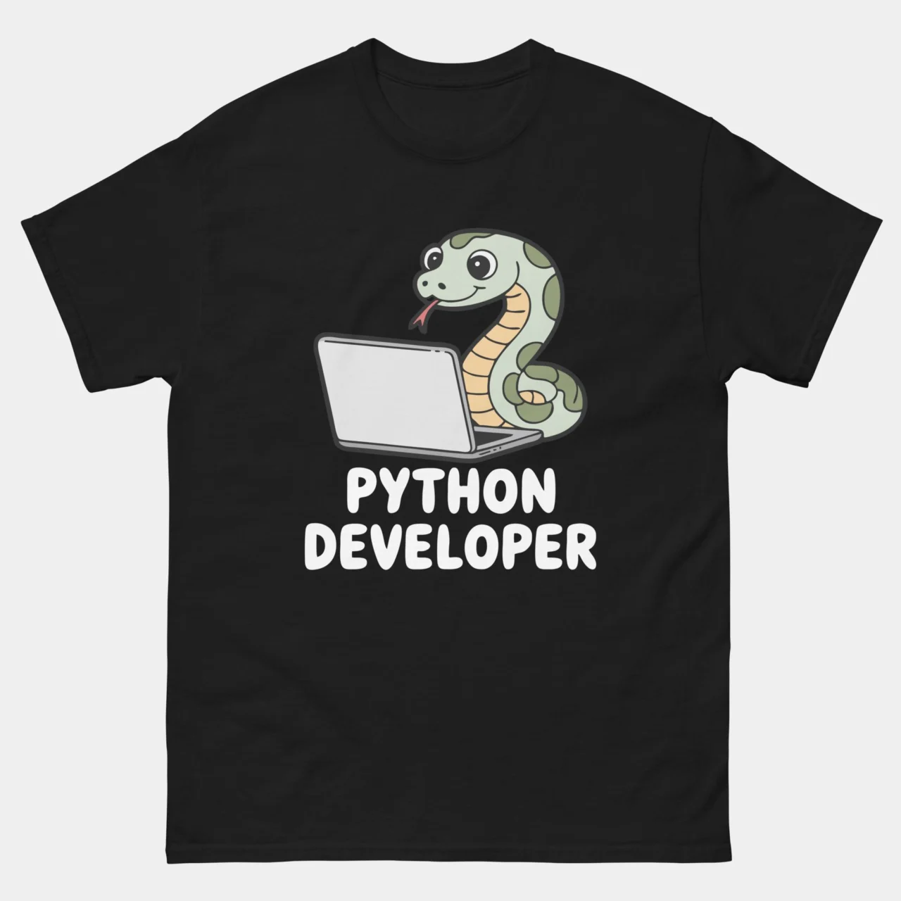 #PythonDeveloper #CodingHumor #SoftwareEngineering #DataScience #SnakeMascot #DevLife #TechFashion #ProgrammerGift #PythonProgramming #FunnyTshirts
