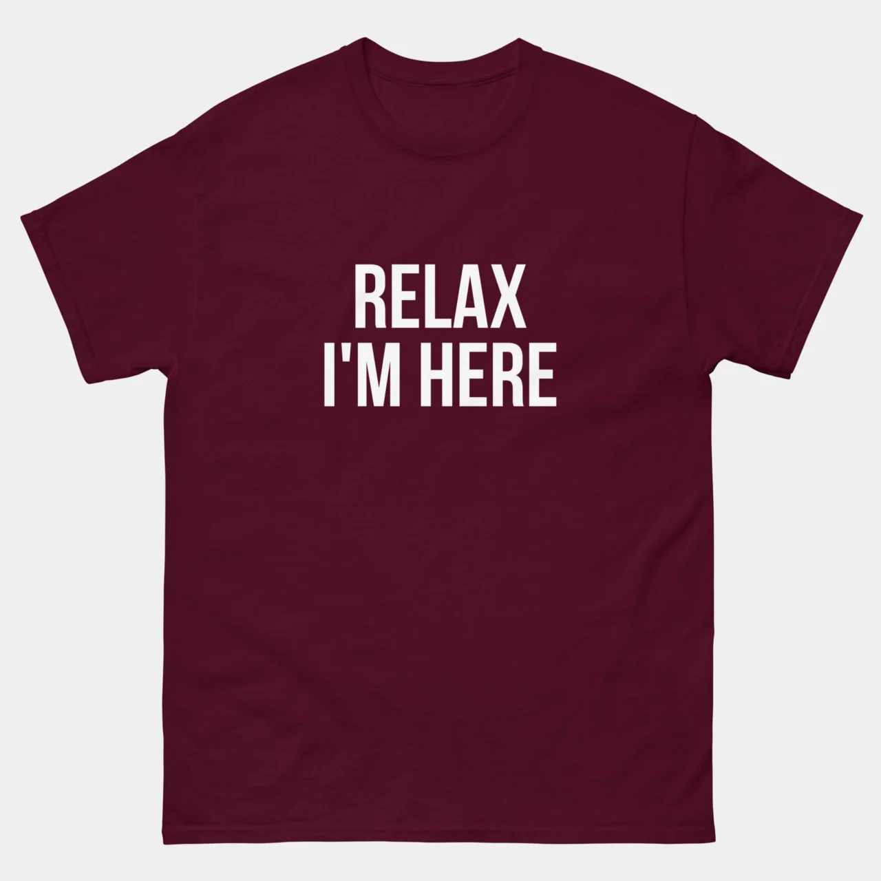 Relax I’m Here Funny Tech Support T-Shirt for Computer Geeks – Classic Unisex Heavy Cotton T-Shirt by Tech Geeks Apparel: