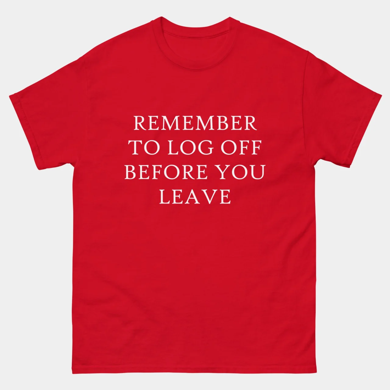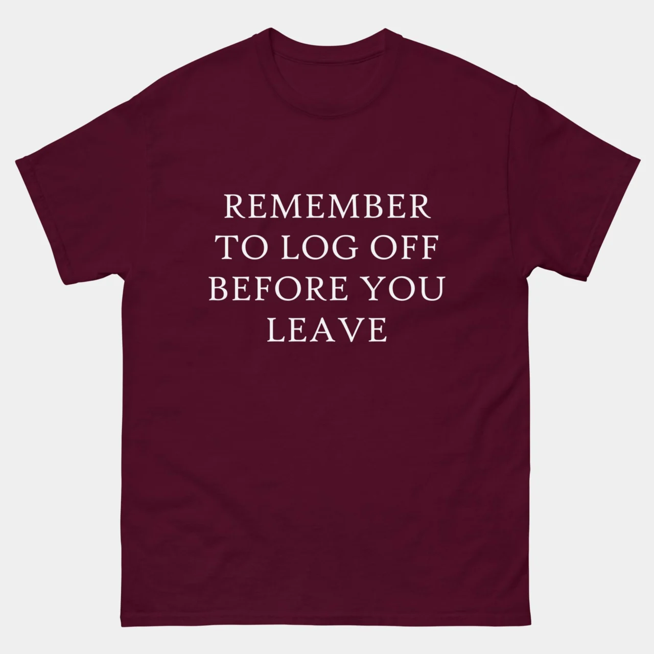 Remember To Log Off Before You Leave T-Shirt – The sign every office should have… now wearable.
