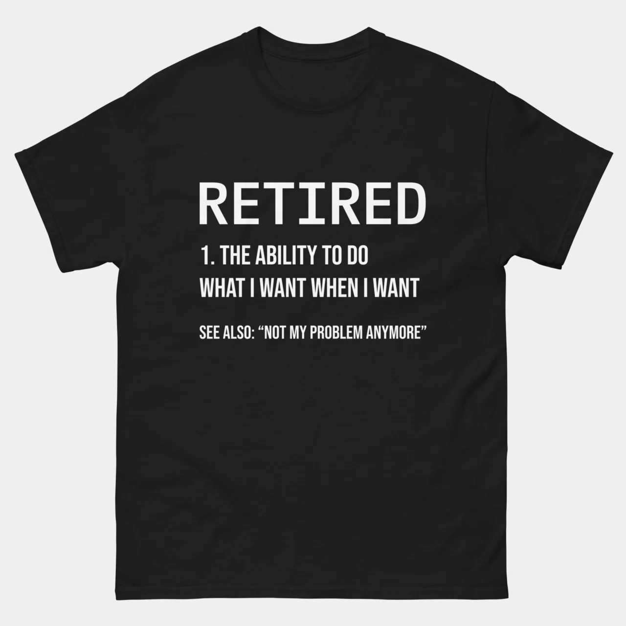 Retired Definition Funny T-Shirt – The Ability To Do What I Want When I Want – Not My Problem Anymore Shirt – Retirement Gift Tee – Classic Unisex Heavy Cotton T-Shirt by TechGeeksApparel: