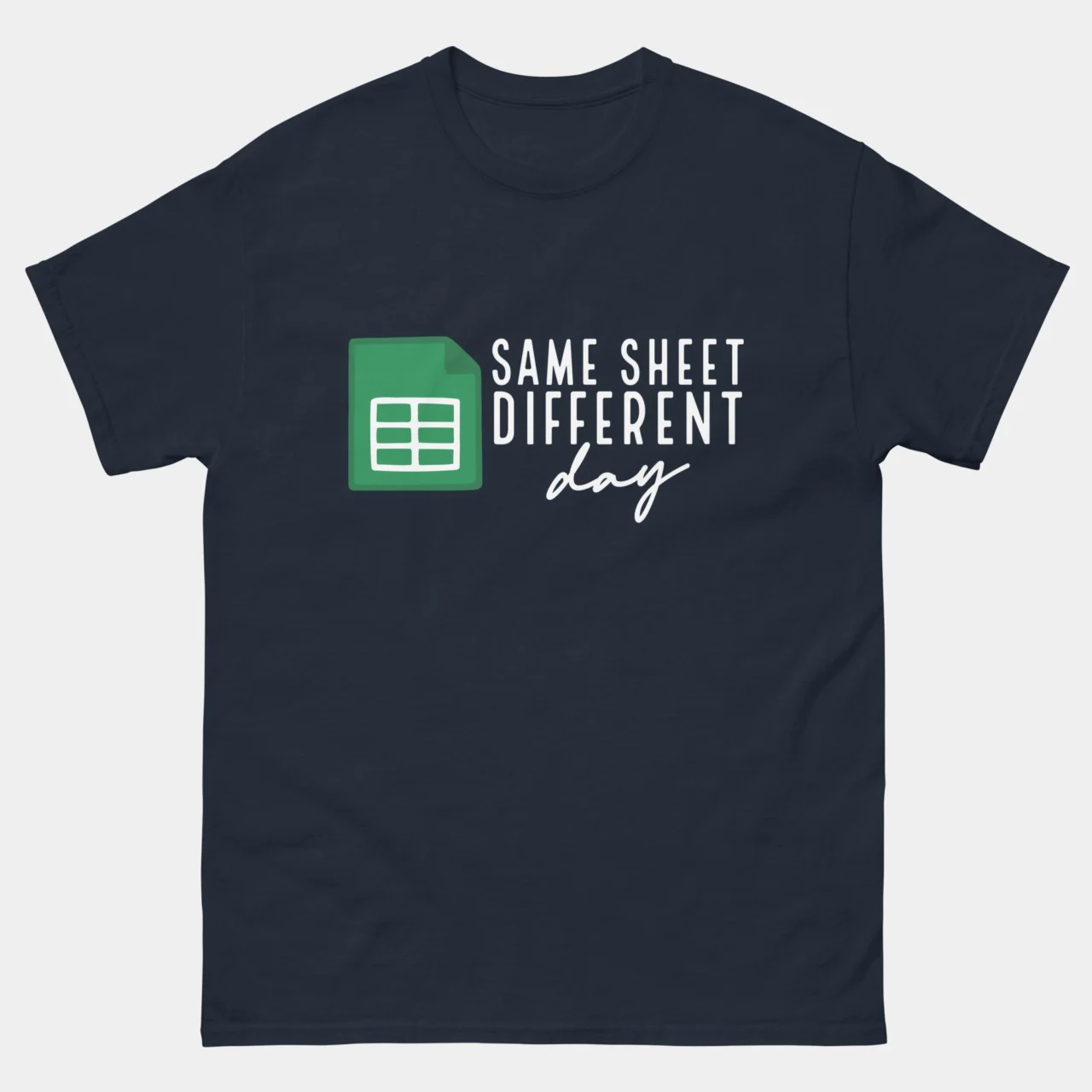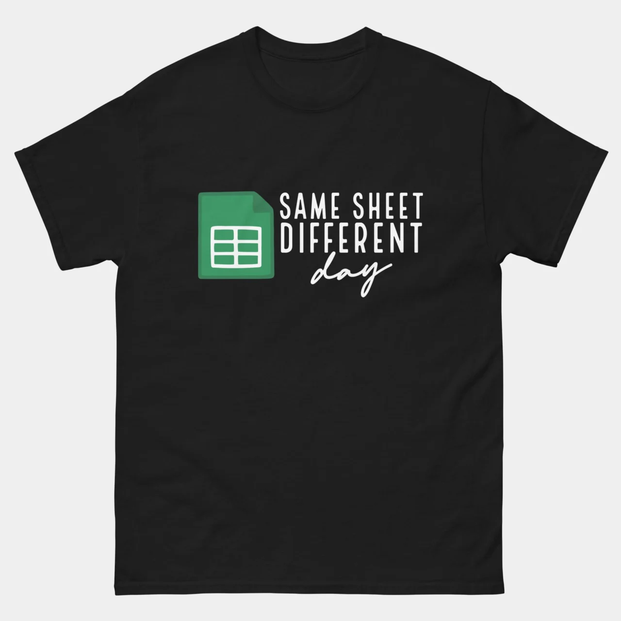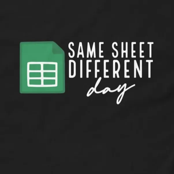#SameSheetDifferentDay #SpreadsheetHumor #DataAnalyst #AccountantLife #ExcelPuns #OfficeCulture #WorkplaceHumor #FunnyTshirts #DataEntry #FinanceFashion