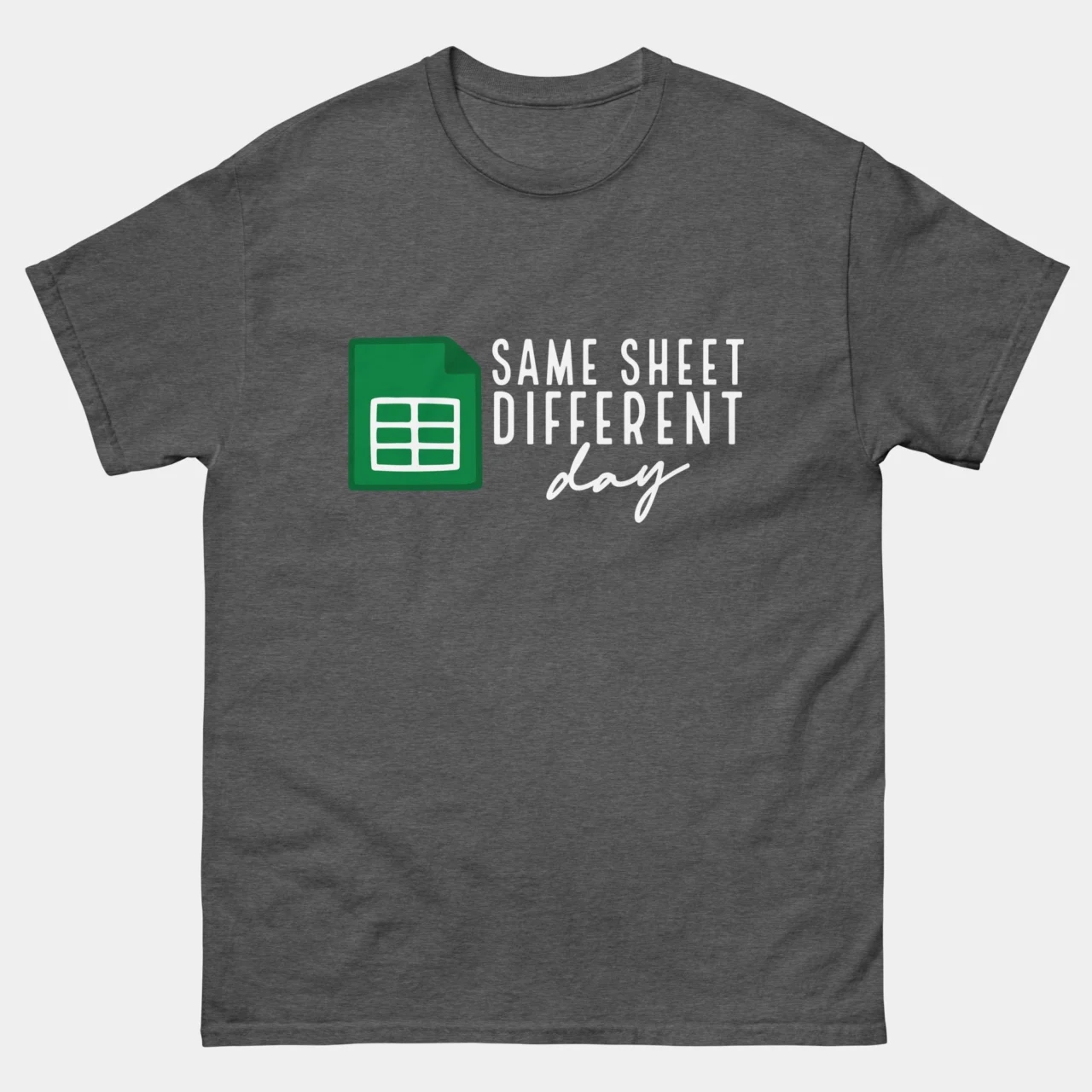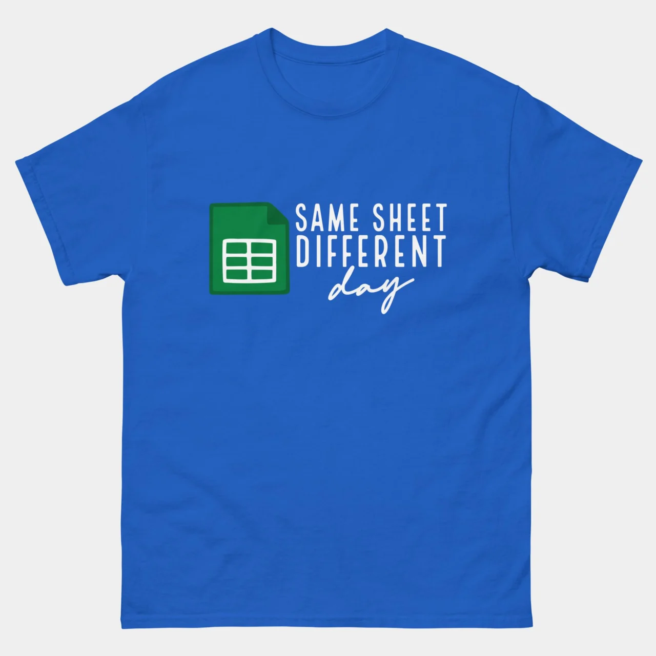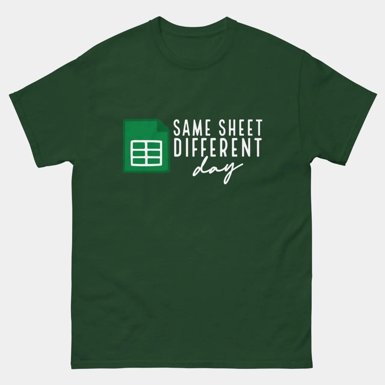 #SameSheetDifferentDay #SpreadsheetHumor #DataAnalyst #AccountantLife #ExcelPuns #OfficeCulture #WorkplaceHumor #FunnyTshirts #DataEntry #FinanceFashion