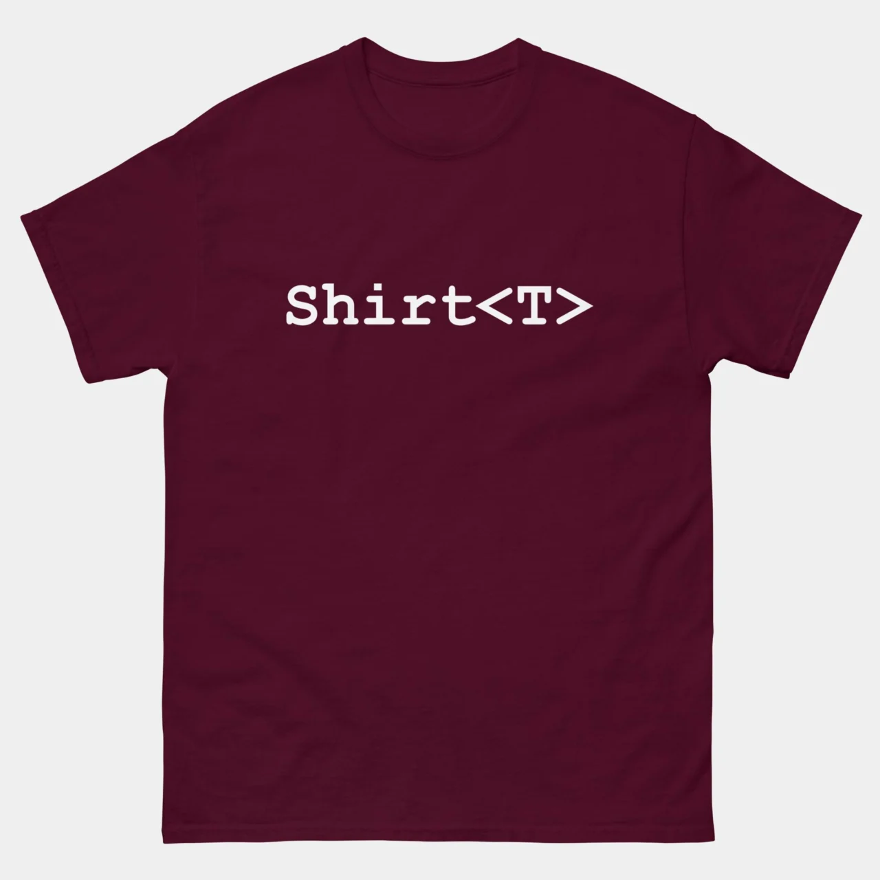 Shirt<T> Generic Type Parameter T-Shirt – Funny Programmer Coding Shirt – Software Engineer Nerd Gift Tee – Classic Unisex Heavy Cotton T-Shirt by TechGeeksApparel: