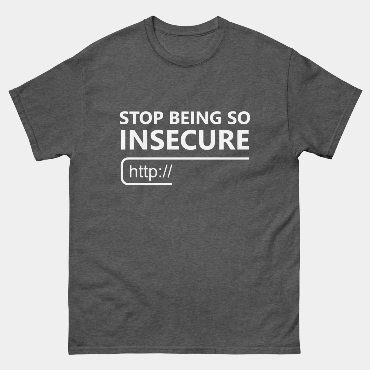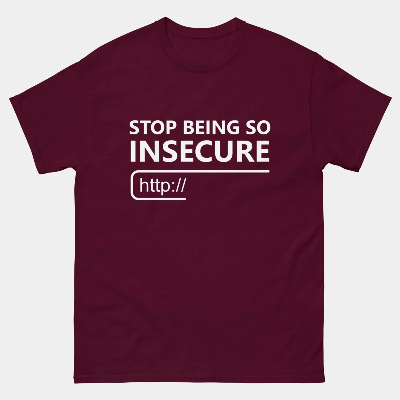 Stop Being So Insecure T-Shirt – Funny Cybersecurity Shirt – HTTP Insecure Tech Humor Tee – InfoSec Nerd Gift – Classic Unisex Heavy Cotton T-Shirt by TechGeeksApparel: