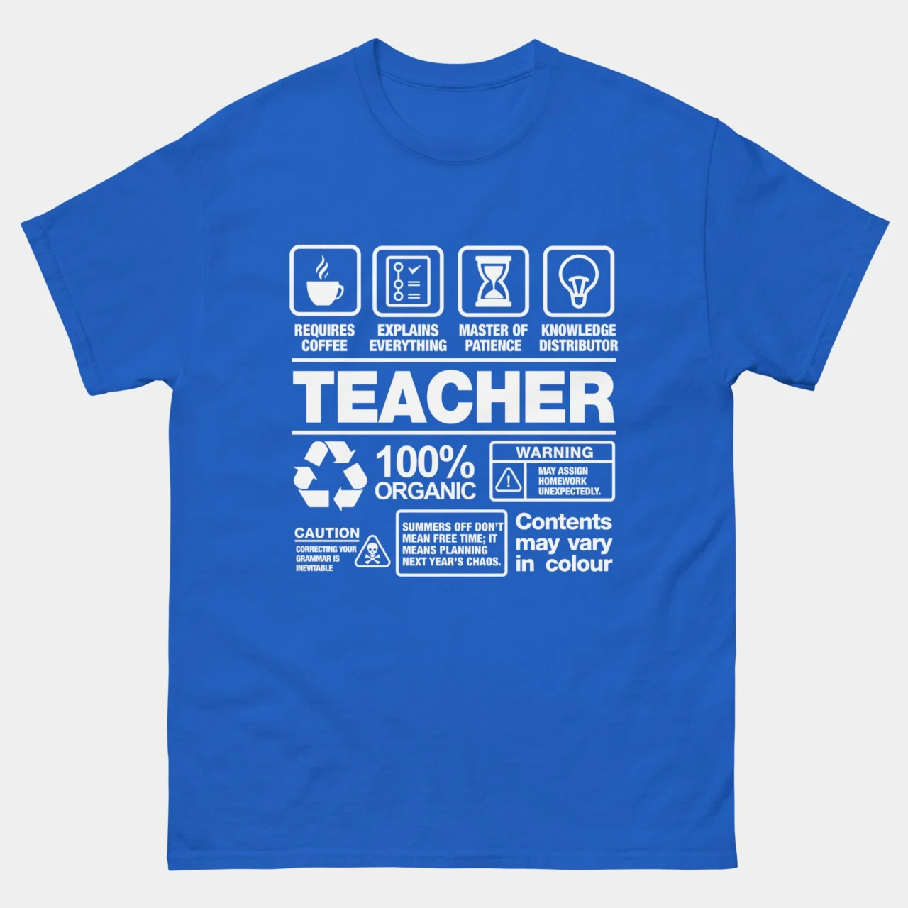 Teachers make the world go round, and this t-shirt is here to help you show off your love for education. Whether you’re teaching math, science, or art, this funny teacher shirt speaks to the everyday hustle of educators. Perfect for classroom humor or teacher appreciation week, this shirt brings a smile to every student and fellow teacher.