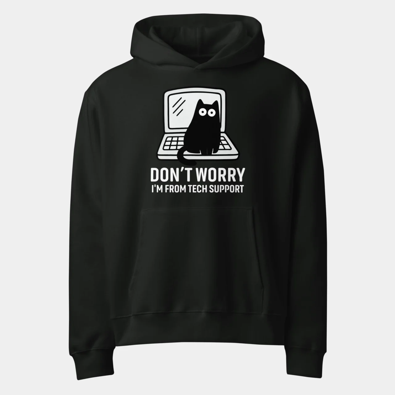 Don’t Worry I’m From Tech Support Cat Oversized Hoodie – Funny Tech Humor IT Helpdesk Pullover