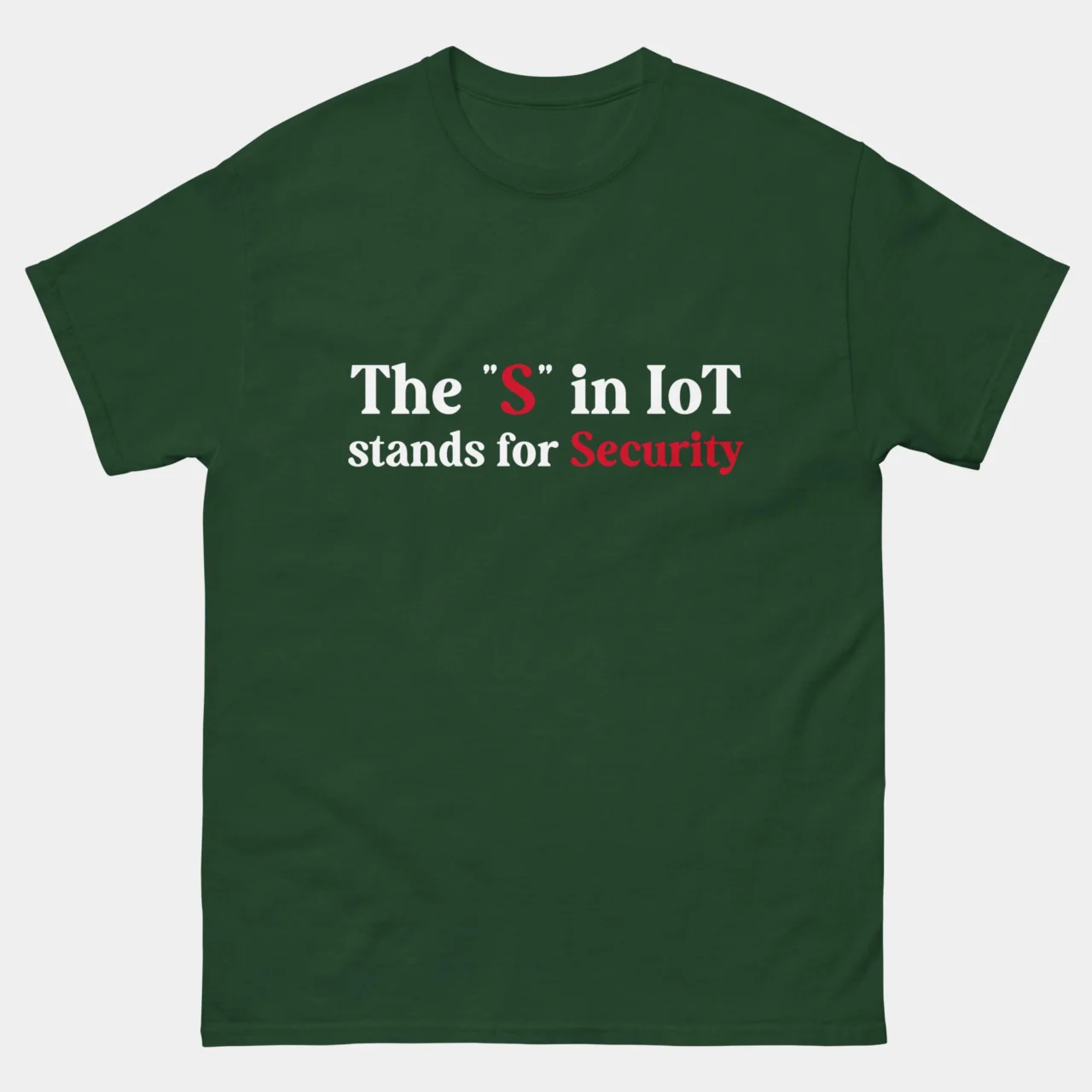 The S in IoT Stands for Security T-Shirt, Funny Cybersecurity Analyst Graphic Tee, IoT Engineer Sarcastic Tee, IT Professional Gift, Network Security Graphic Shirt, White Hat Hacker Apparel, Computer Science Humor Top