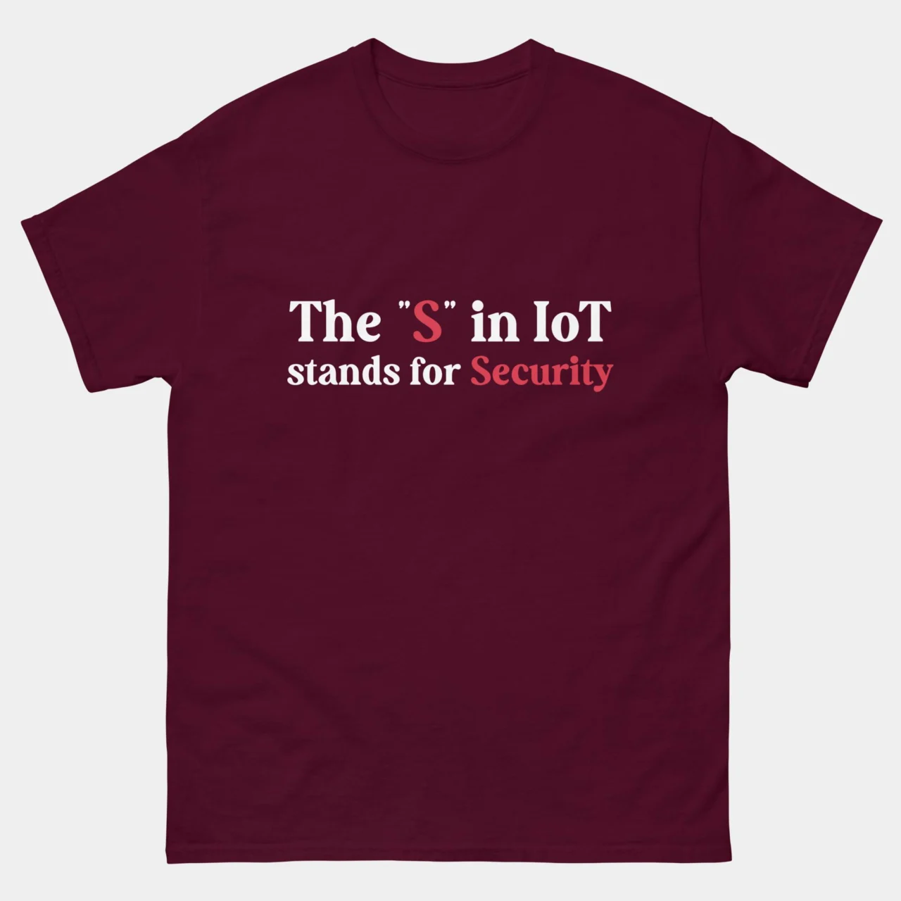 For the tech pro who knows that “connected” doesn’t always mean “protected”. This classic The S in IoT Stands for Security T-Shirt delivers a brilliant, high-level industry joke about the inherent risks in the Internet of Things: