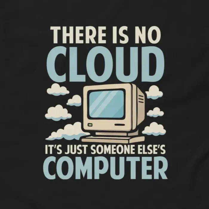 This There Is No Cloud, It’s Just Someone Else’s Computer T-Shirt is the ideal piece of Cloud Computing Tech Humor apparel for Sysadmins, IT Professionals, Developers, and network engineers. It’s an instant conversation starter that separates the technical realists from the marketing believers.