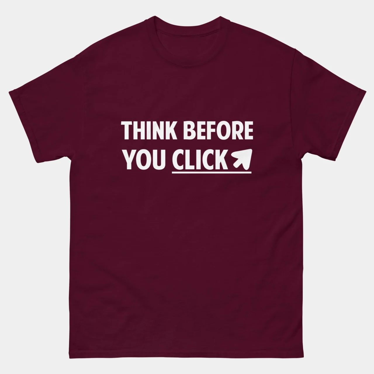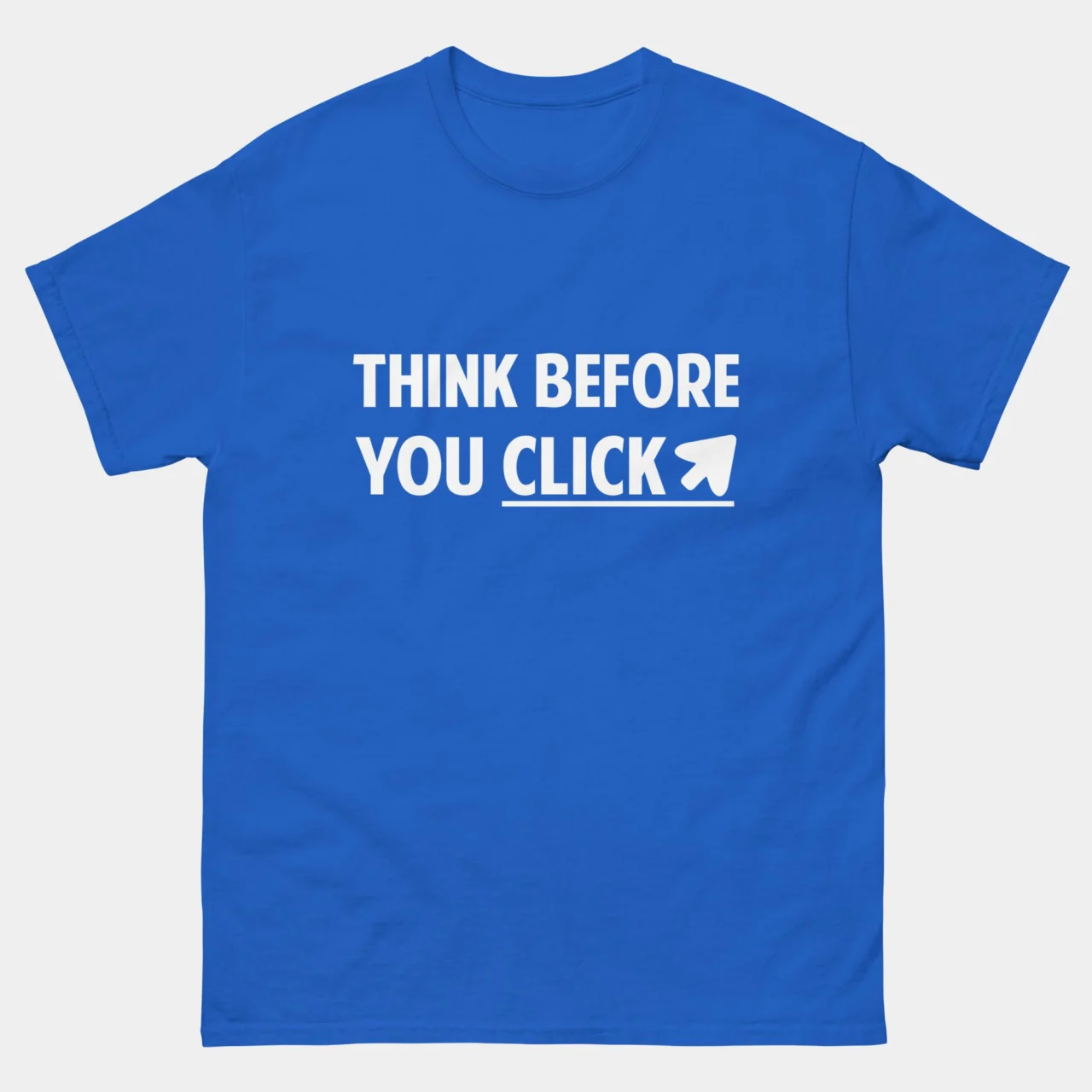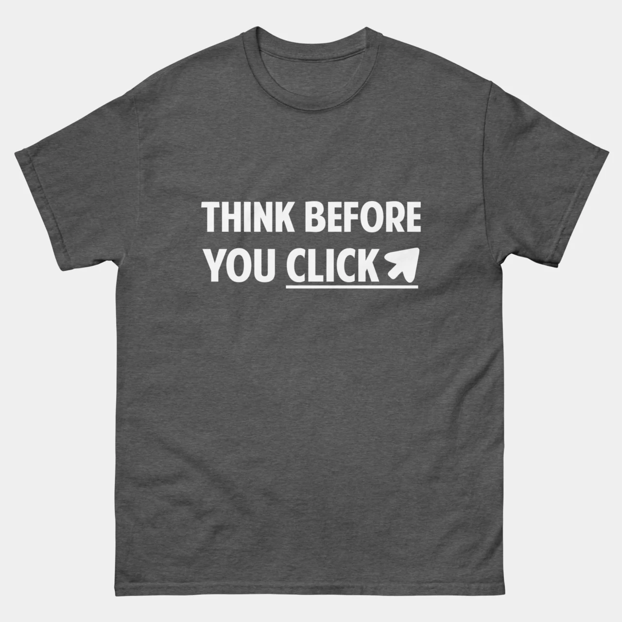 Think Before You Click Cybersecurity T-Shirt – Funny Cyber Security Tee – IT Security Awareness Shirt – Ethical Hacker Gift – Tech Professional Shirt – Classic Unisex Heavy Cotton T-Shirt by Tech Geeks Apparel: