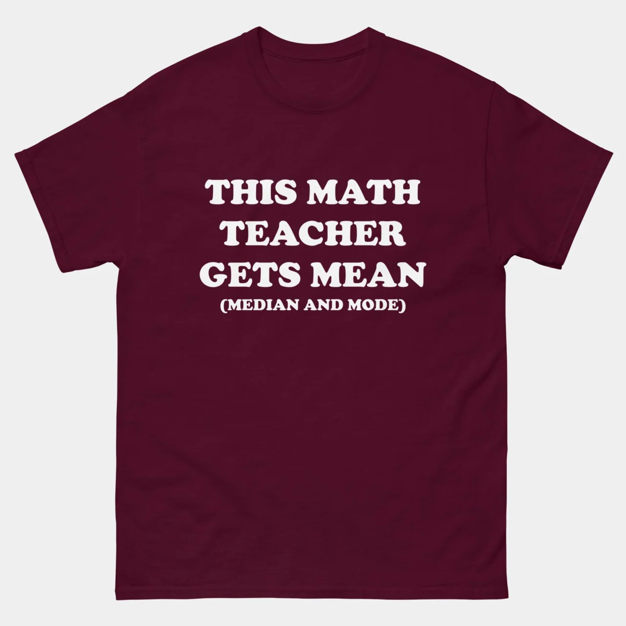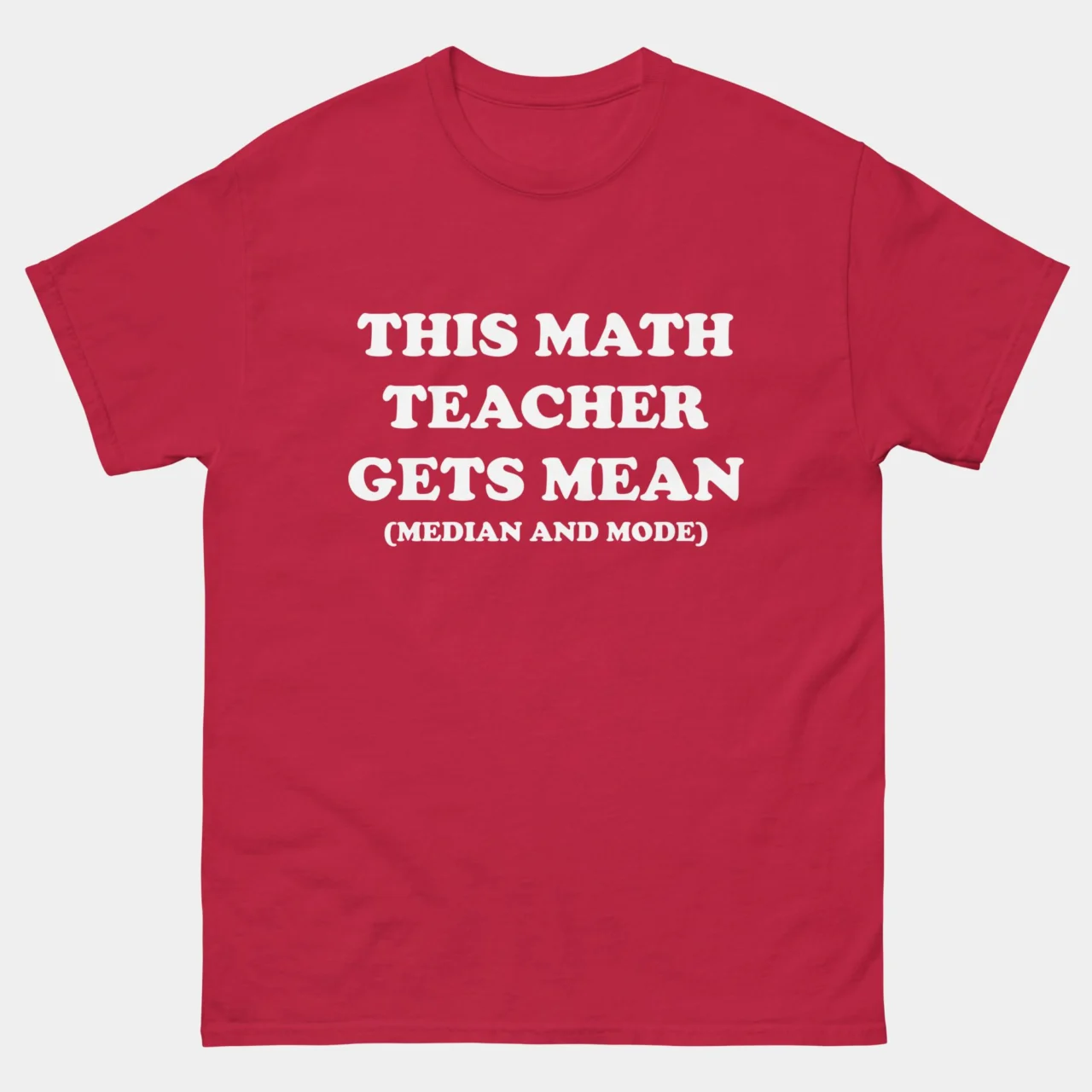 This Math Teacher Gets Mean Median And Mode T-Shirt – Funny Mathematics Teacher T-Shirt – Classic Unisex Heavy Cotton T-Shirt by Tech Geeks Apparel: