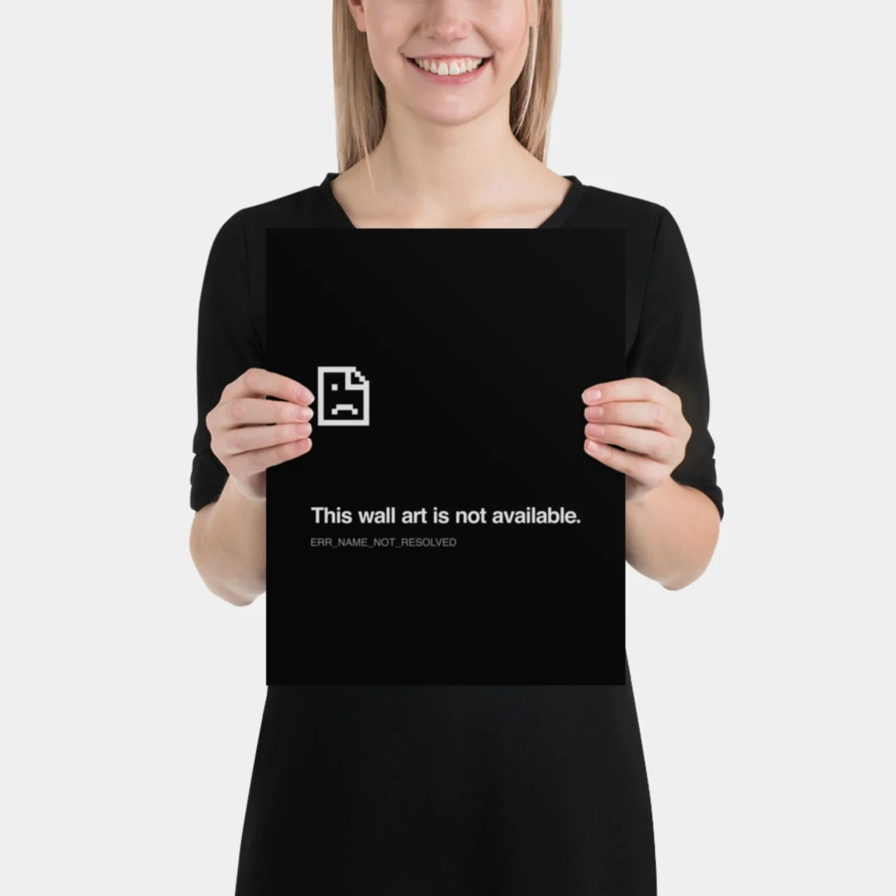This Wall Art Is Not Available Poster – Funny Tech Error Meme Typography – 404 Error Art – Programmer Tech Decor – Minimalist Geeky Home Office