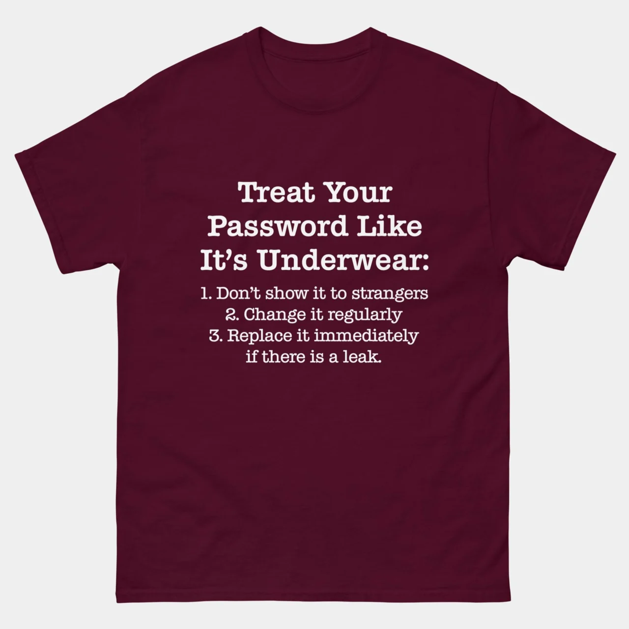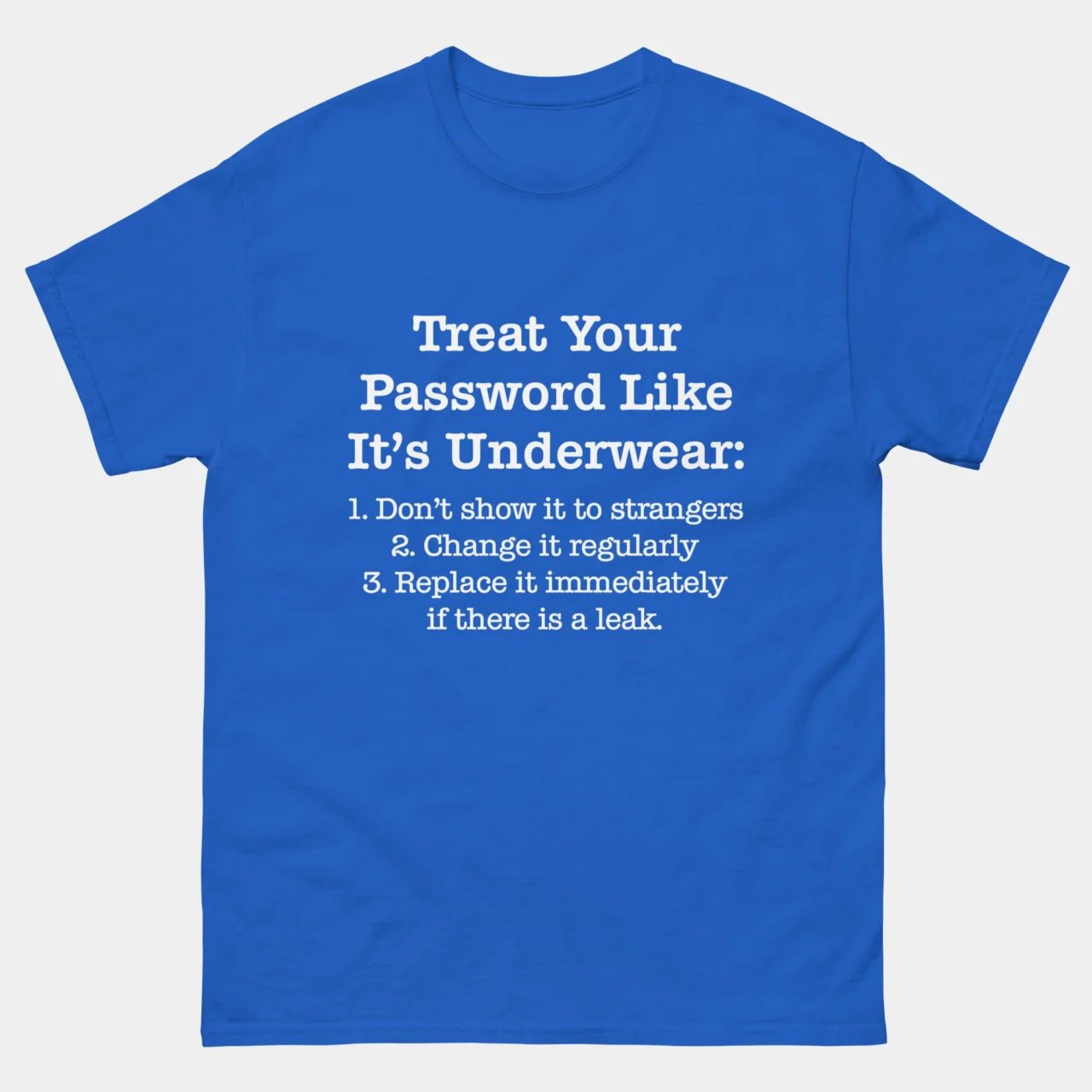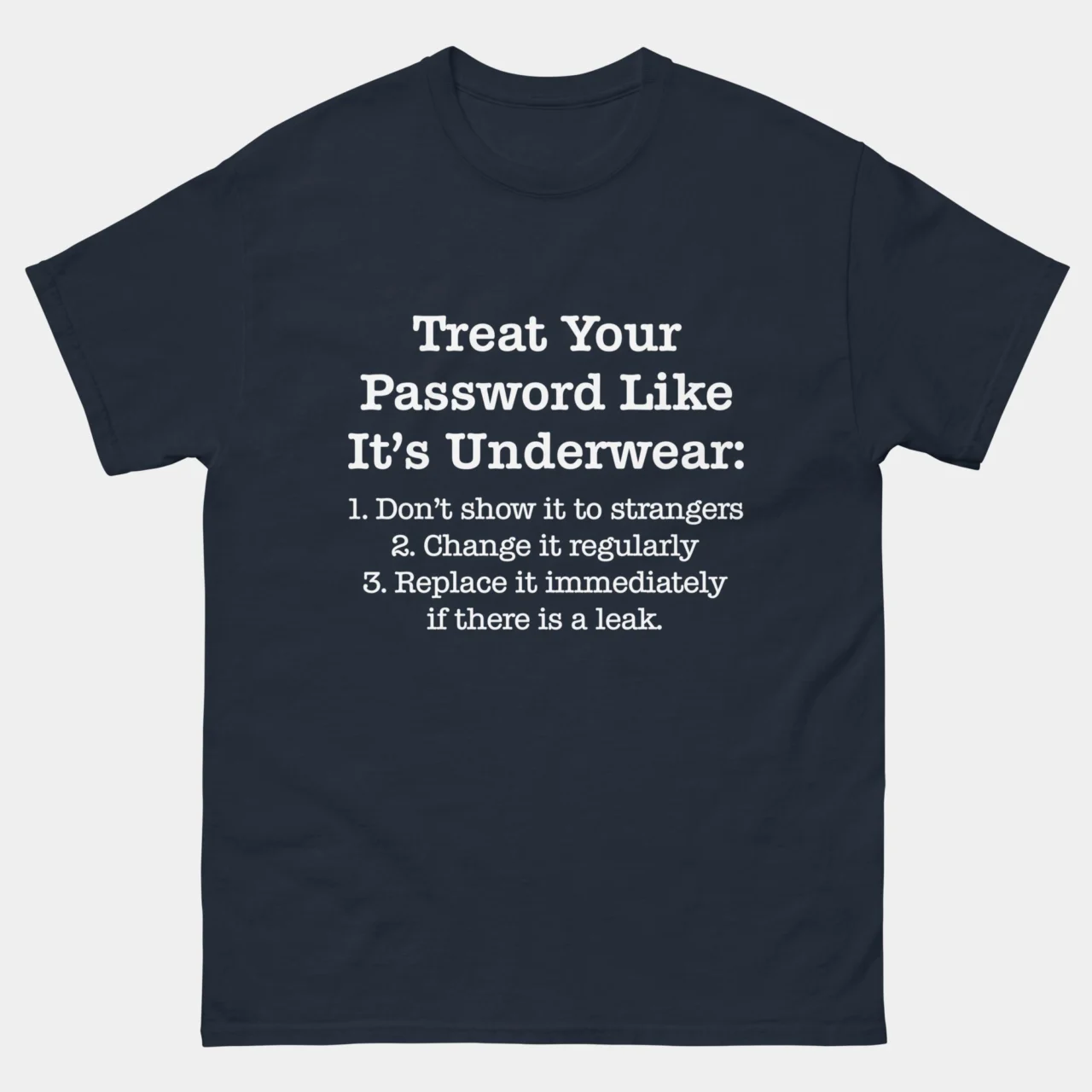 Treat Your Password Like It’s Underwear T-shirt, Funny Cybersecurity Rule Graphic Tee, Sarcastic Privacy Awareness Shirt, IT Department Professional Top, Sarcastic IT Professional Tee, Gift for Hackers & SysAdmins, Data Privacy Rule Graphic Shirt, Tech Humor Office Apparel, Computer Security Awareness Top