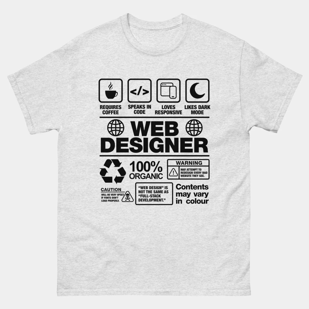 #WebDesigner #FrontendDeveloper #FunnyWebDesignShirt #ResponsiveDesign #HTMLCSS #DesignerHumor
