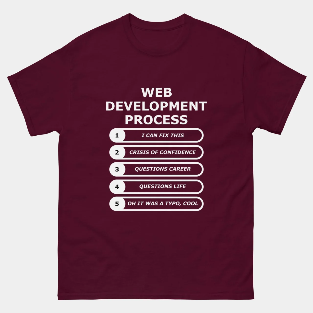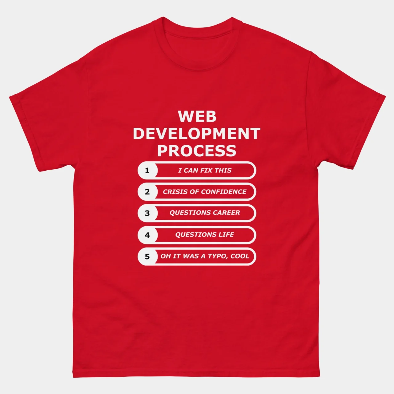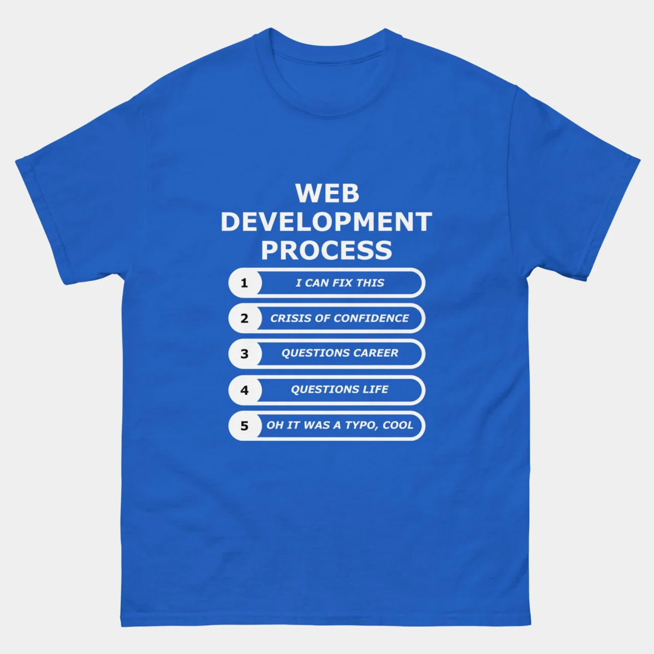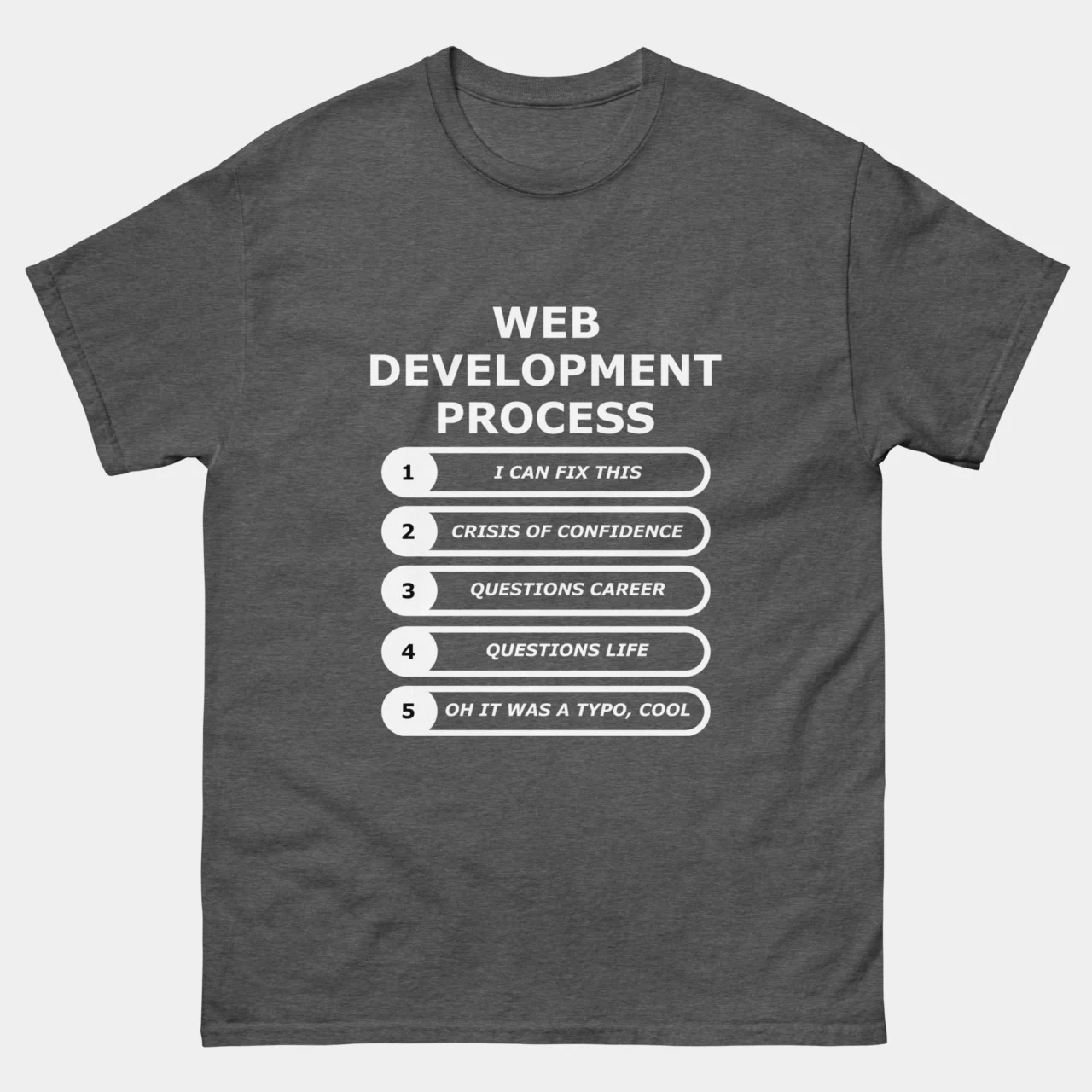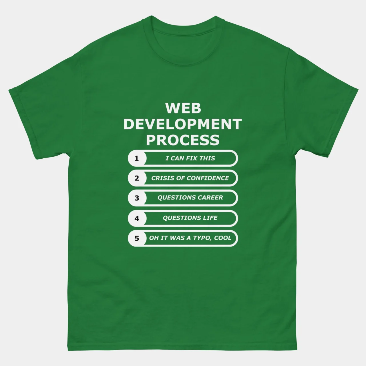 #WebDevProcess #FunnyCoderShirt #TypoJokes #DevSpiral #DebuggingHumor
