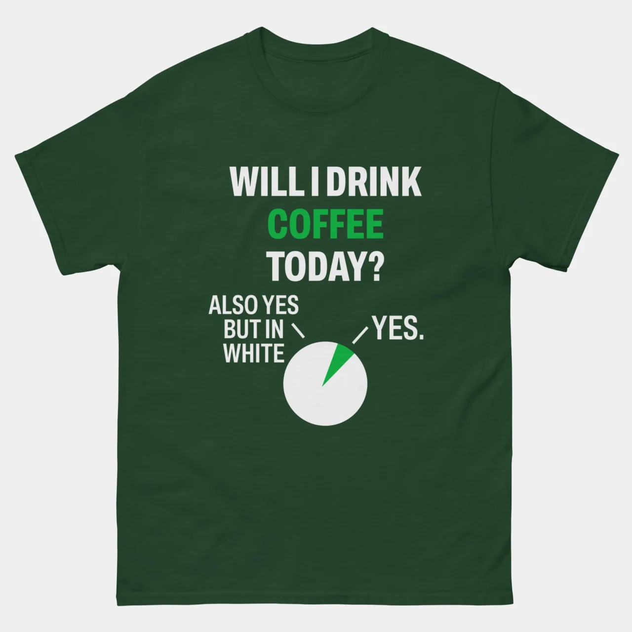 Will I Drink Coffee Today T-Shirt, Funny Coffee Pie Chart Tee, Sarcastic Caffeine Addict Tee, Morning Ritual Barista Humor Shirt, Gift for Coffee Lovers & Overworked Professionals