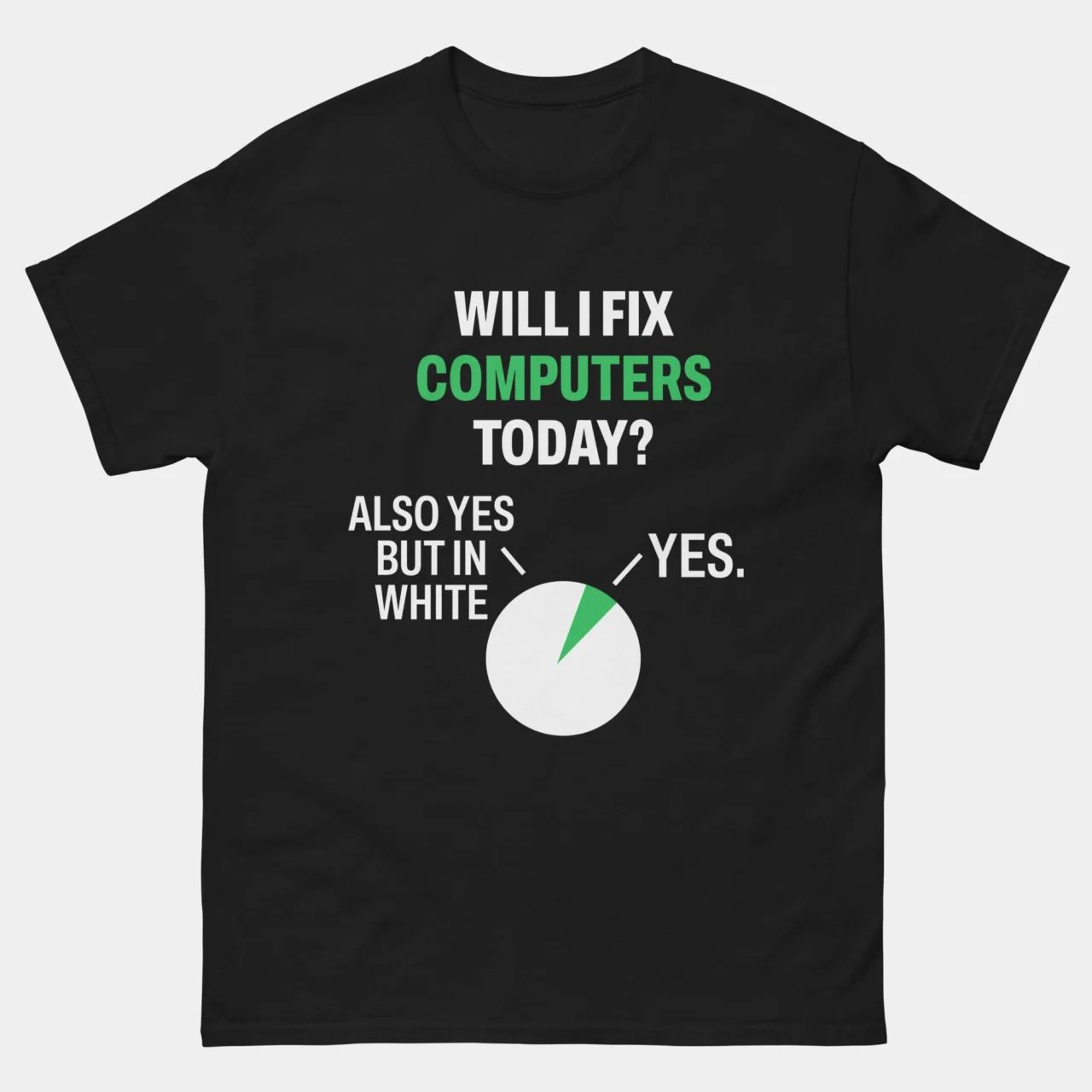 Will I Fix Computers Today Funny IT T-Shirt, Sarcastic Computer Repair Tee, Tech Support & SysAdmin Humor Shirt, Gift for IT Professionals, Geeks & PC Builders