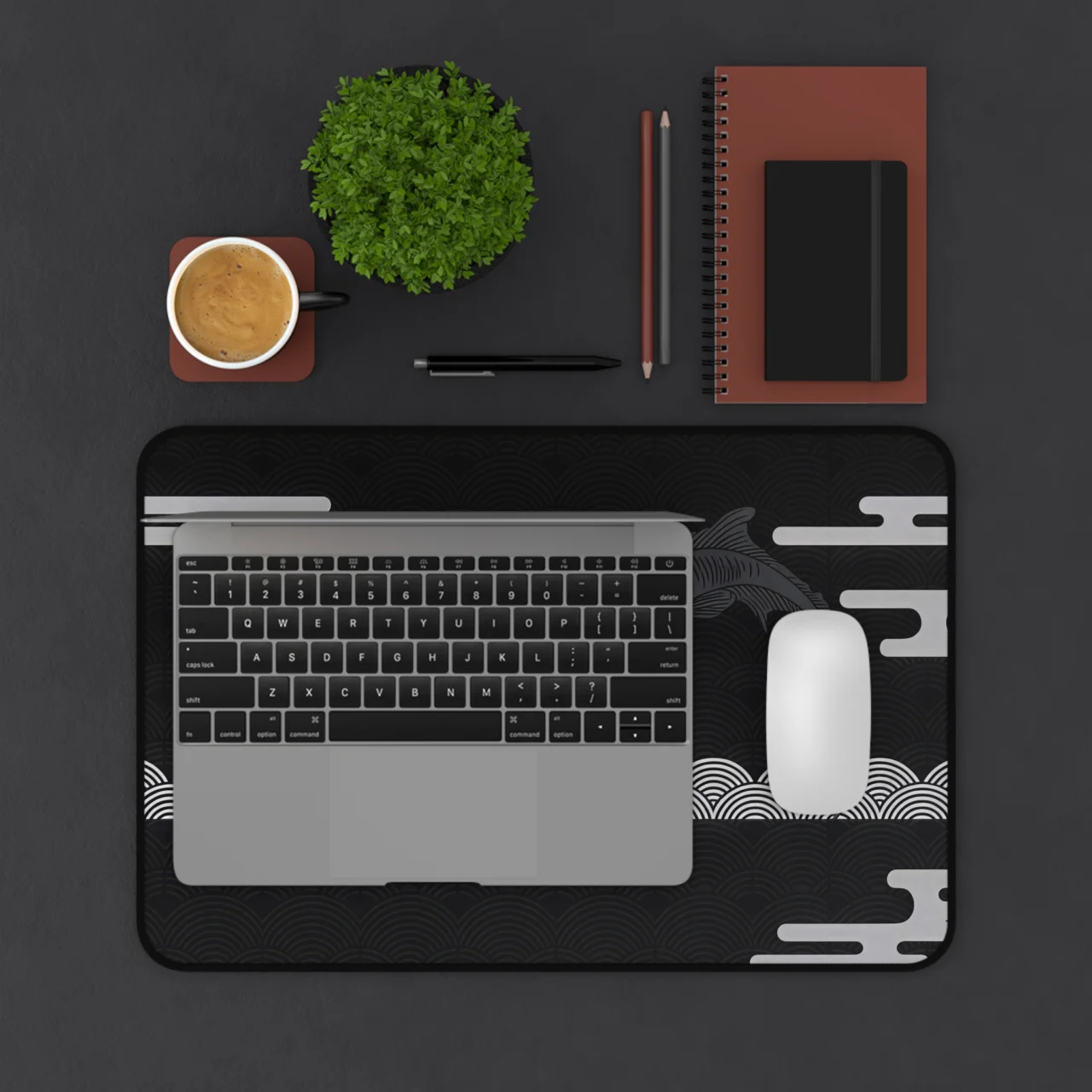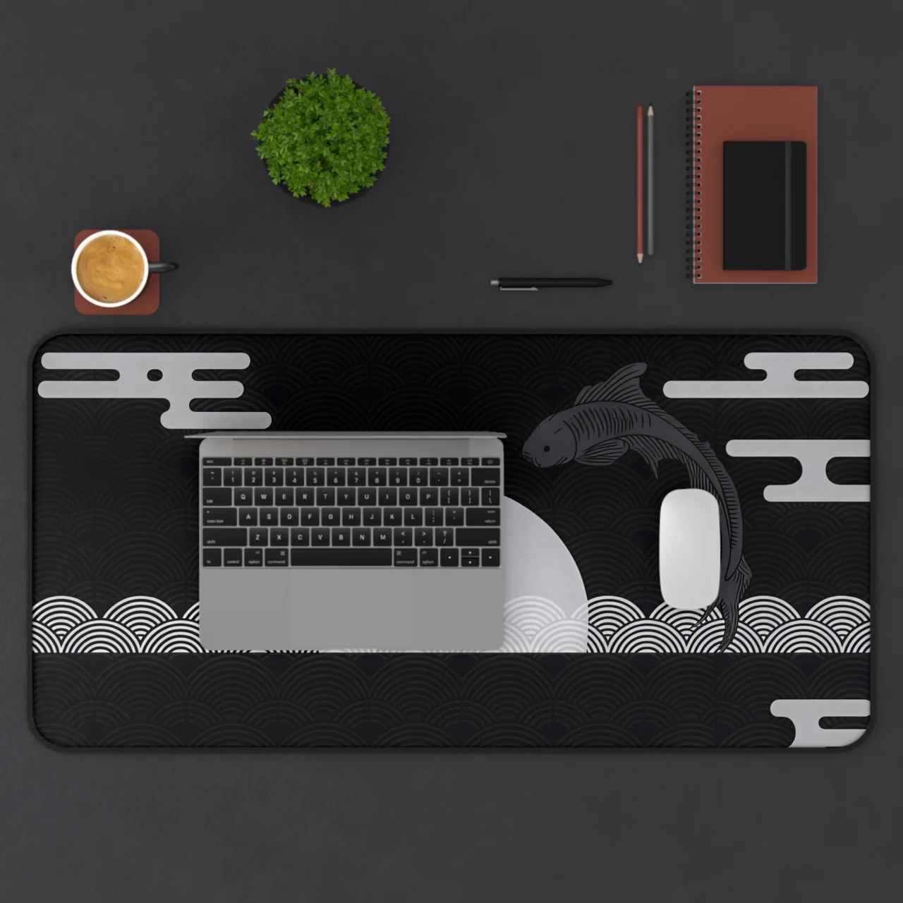 Transform your desk into a space of zen-like focus. This design captures the timeless beauty of Japanese “Ukiyo-e” style art but reimagines it for the modern minimalist. The high-contrast grey-on-black aesthetic ensures that your setup remains clean and professional while adding a layer of deep cultural artistry.